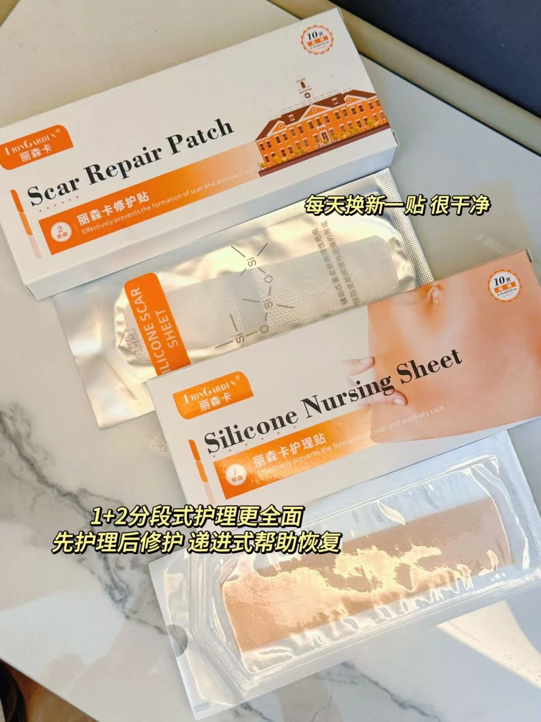 每日碘伏消毒,保持干燥,等伤口结痂之后开始8痕护理,我买的【丽森卡8痕贴】