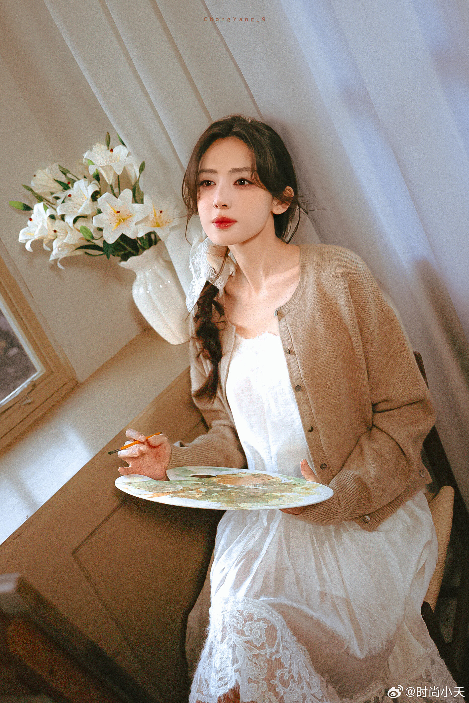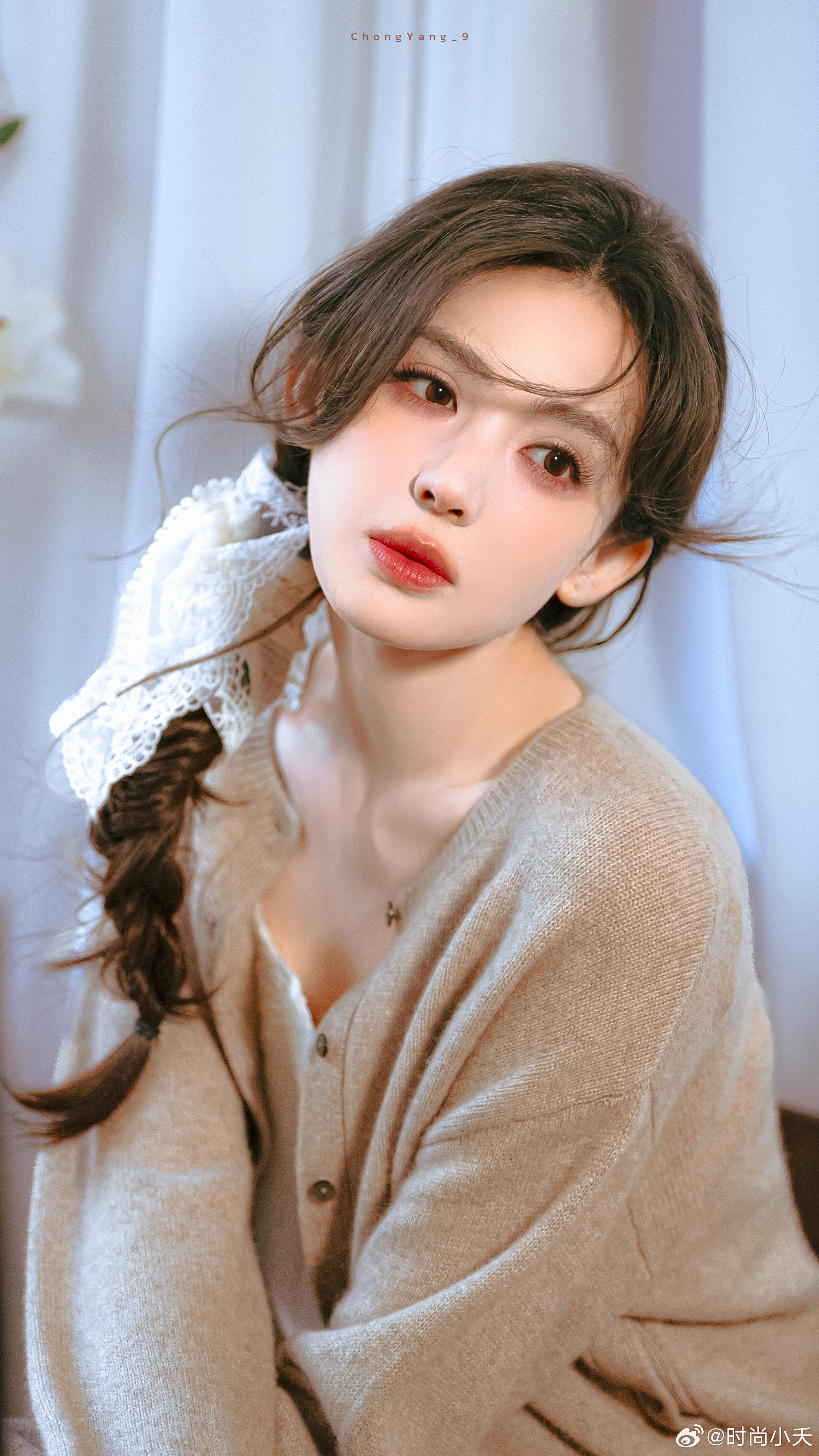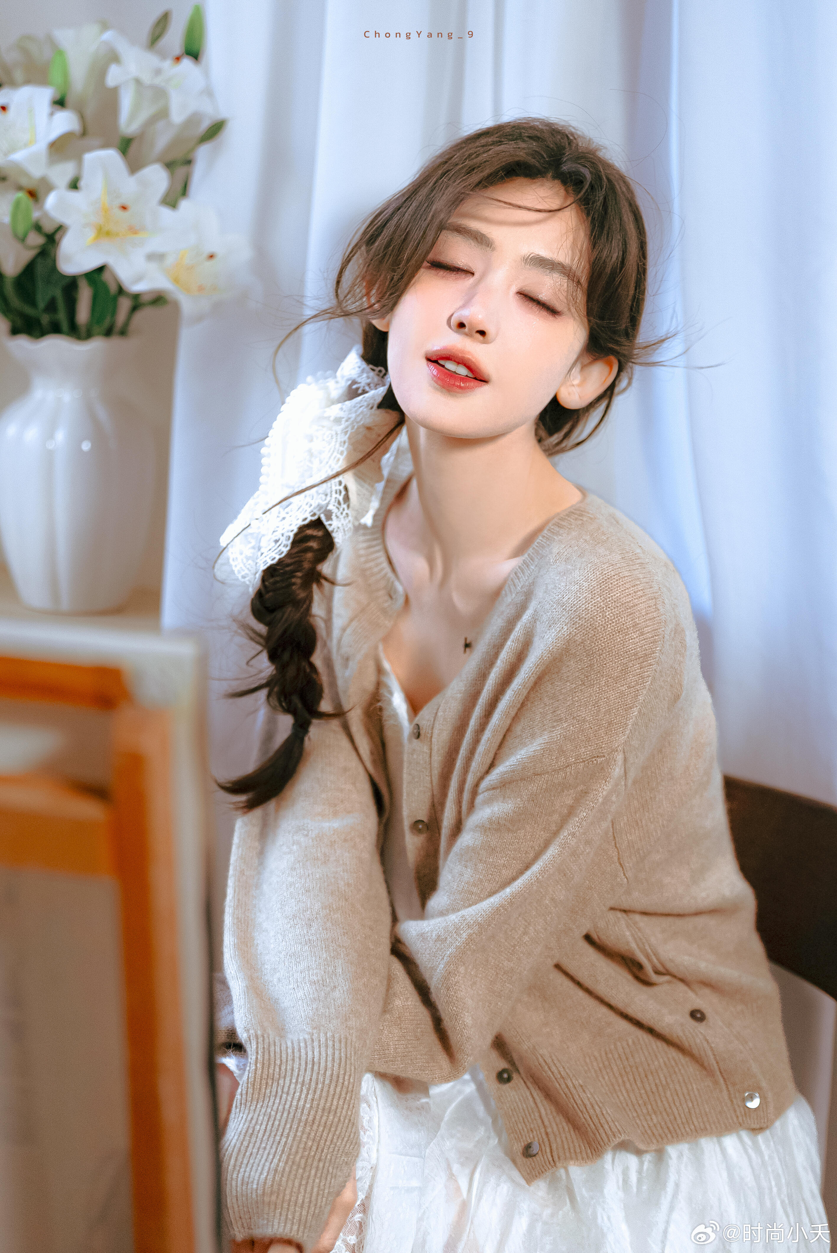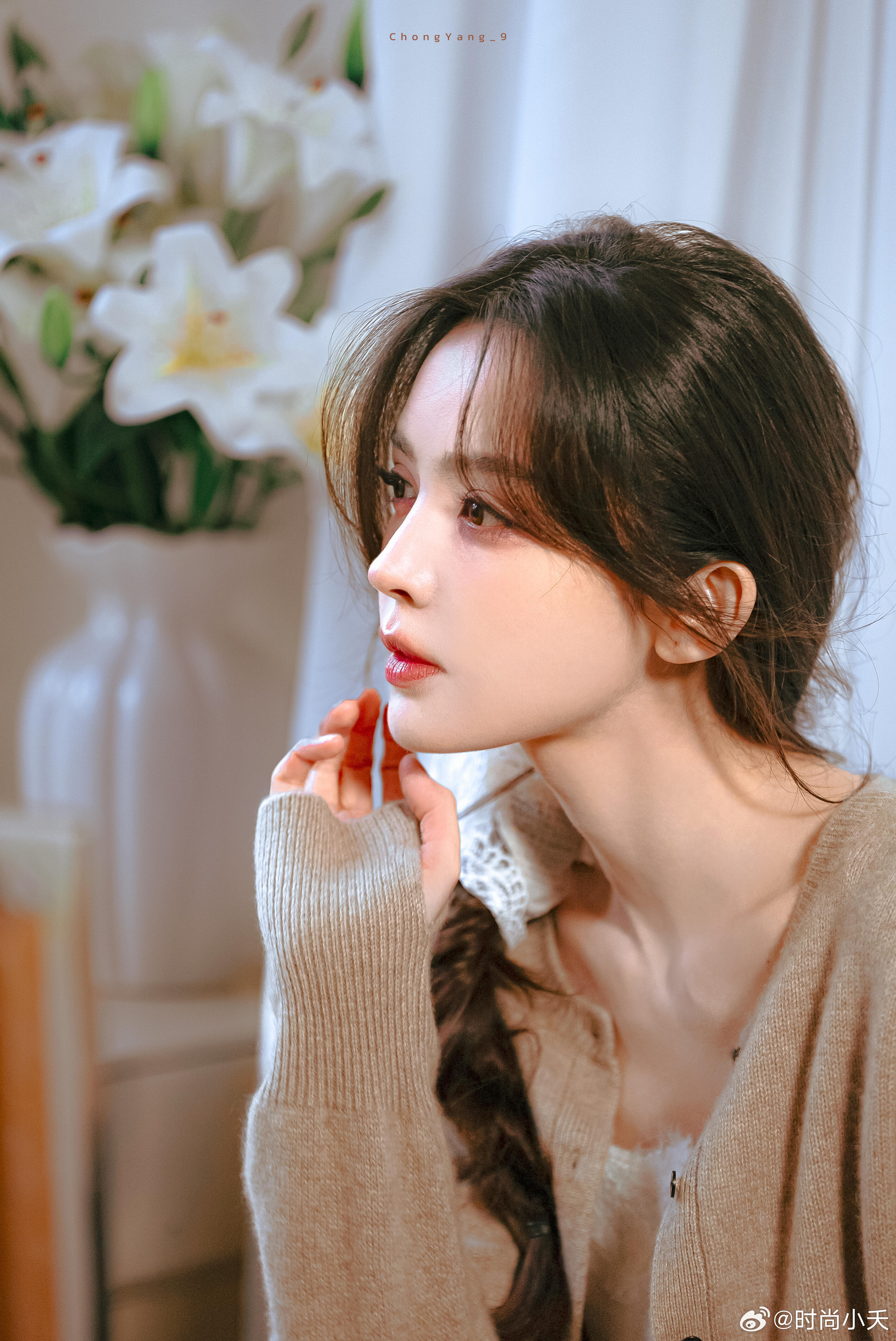 迪丽热巴慵懒的编发+暖调光影,春日女神本人没错了