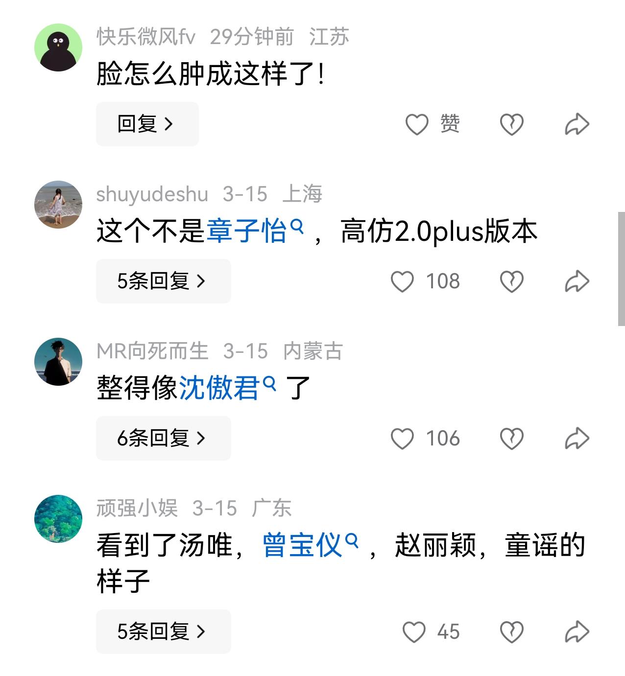 一早醒来,被章子怡的变化搞懵了! 这是章子怡?我还以为是沈傲君,还以为是朱珠,还以为是…… 都不是,这就是妥妥的章子怡!真的有点认不出来了,这真的不像章子怡啊!整个脸胖了一圈还不止! 章子怡是娱乐圈少有的没有整过的女明星,但是为什么脸怎么会变成这样呢?难道真的只是纯胖? 自从章子怡离婚后,露面其实不多,人也变得比以前温和,要知道,年轻时候的章子怡,她可不是一个懂得退让的演员,处处都要争先,处处都想压人一头,全身上下都透着一股狠劲!现在的她和以前完全不一样了! 是不是因为年纪大了,心态好了,不再像年轻时,什么都想要,什么都要抢,现在放下了,也懂得退让了,所以才胖了?有人说她自从当了妈妈以后,就变了很多。你怎么看?
