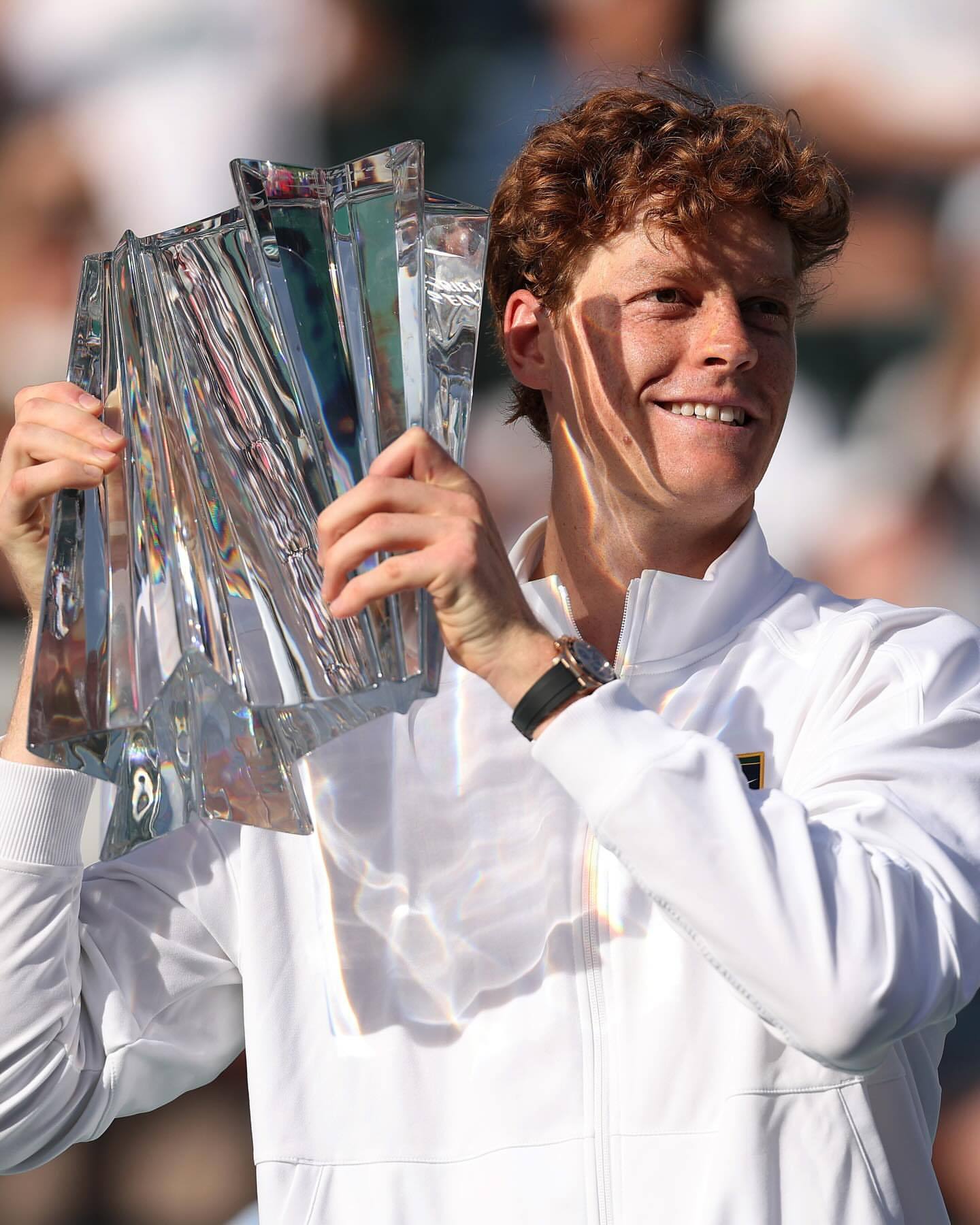 辛纳首夺印第安维尔斯冠军 辛纳捧杯图也来一波,不得不说第五大满贯的奖杯就是好看,