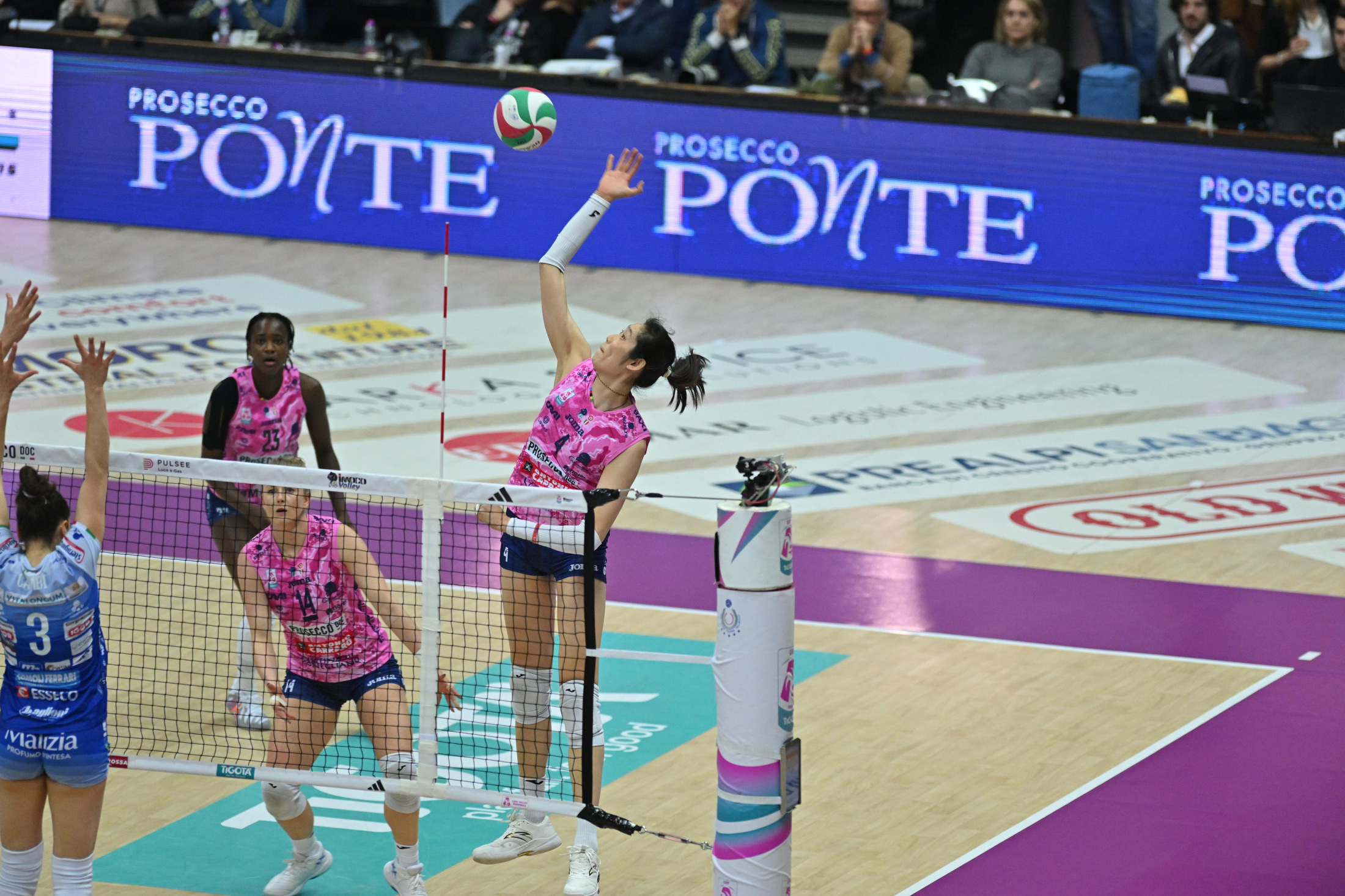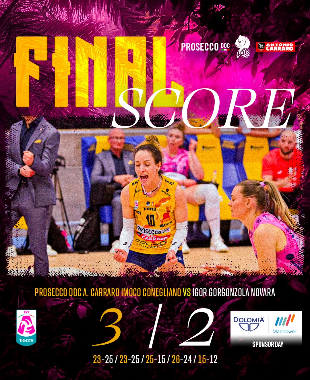 科内利亚诺主场上演让二追三,朱婷完美诠释“大心脏”球员!朱婷全场32扣17中,3