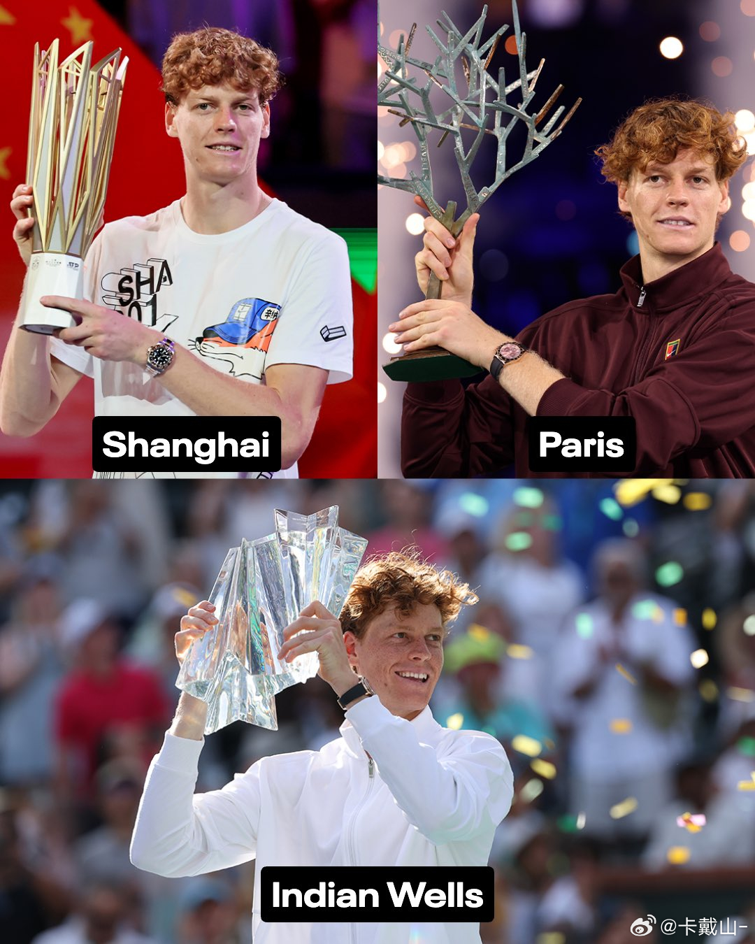 澳网 美网 年终总决赛上海 迈阿密 辛辛那提 多伦多 巴黎 印第安维尔斯辛纳6站硬地大师赛全夺冠杨尼克辛纳ATP