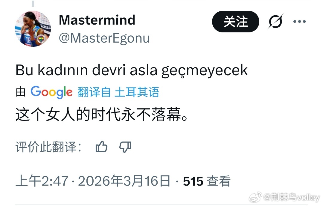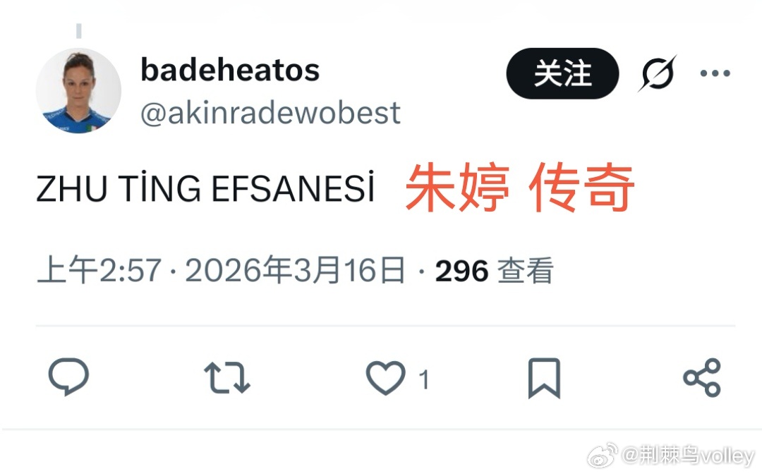 外网粉丝评论:不管你喜不喜欢,你都得承认,她是历史上最优秀的扣球手之一。朱婷是传