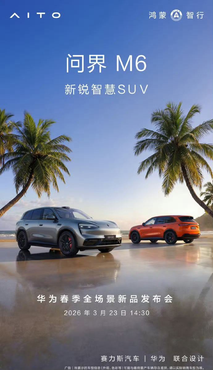 鸿蒙智行官宣3月23日发布会问界M6和尚界Z7/Z7T开启小定