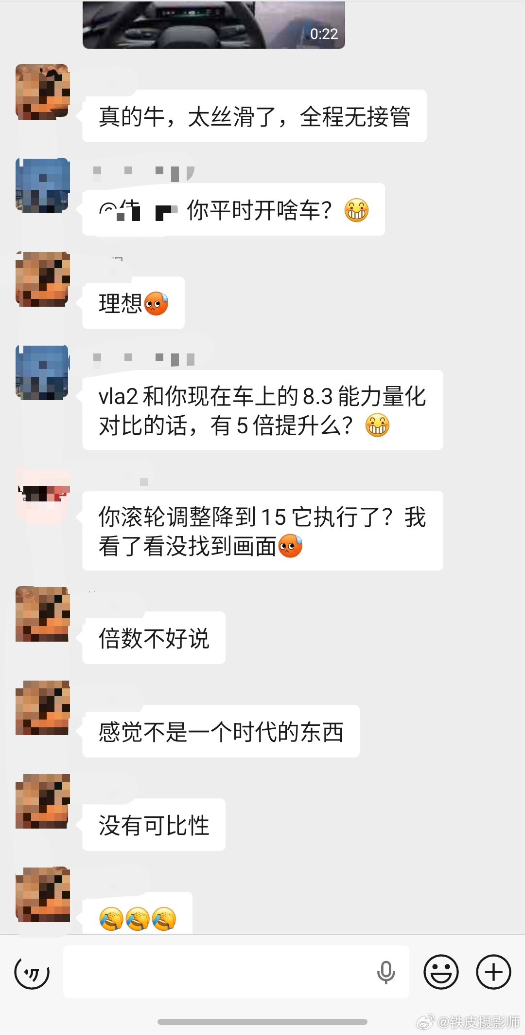这条微博的配图是昨天在智驾比赛群里面,我看到这位理想车主对体验小鹏 VLA2 的