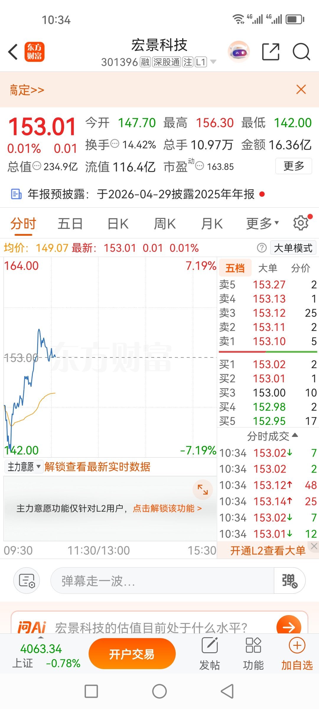 周五群里分享宏景科技301396,已清仓出来,盈利5个点,止盈了,现在行情不好做