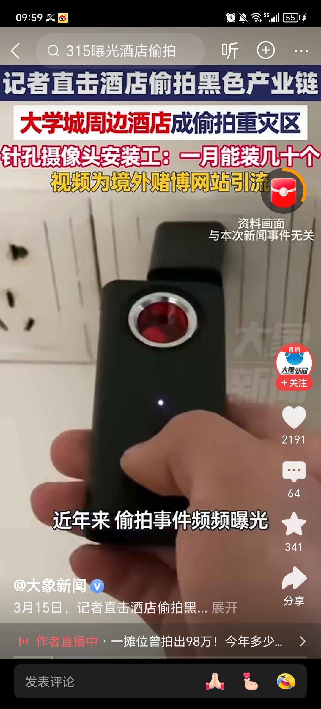 各行各业都想要我狗命! 央视这回是捅破窗户纸了! 大学城周边酒店成偷拍重灾区,针孔摄像头安装师一个月能安装十几个摄像头!酒店成偷拍产业链。 酒店不开门,安装工如何安装?还有一个就是,数据数据的人给钱,无非三方受益,一方受害。 如果生产、售卖、改装卖针孔摄像头、安装针孔摄像头的,抓一个关三个月,罚50000 ~300000,看看谁还敢下手! 对此大家怎么看? 分享今日人生感悟偷拍罪 酒店偷拍探测器 偷拍者产业链 偷窥摄像头