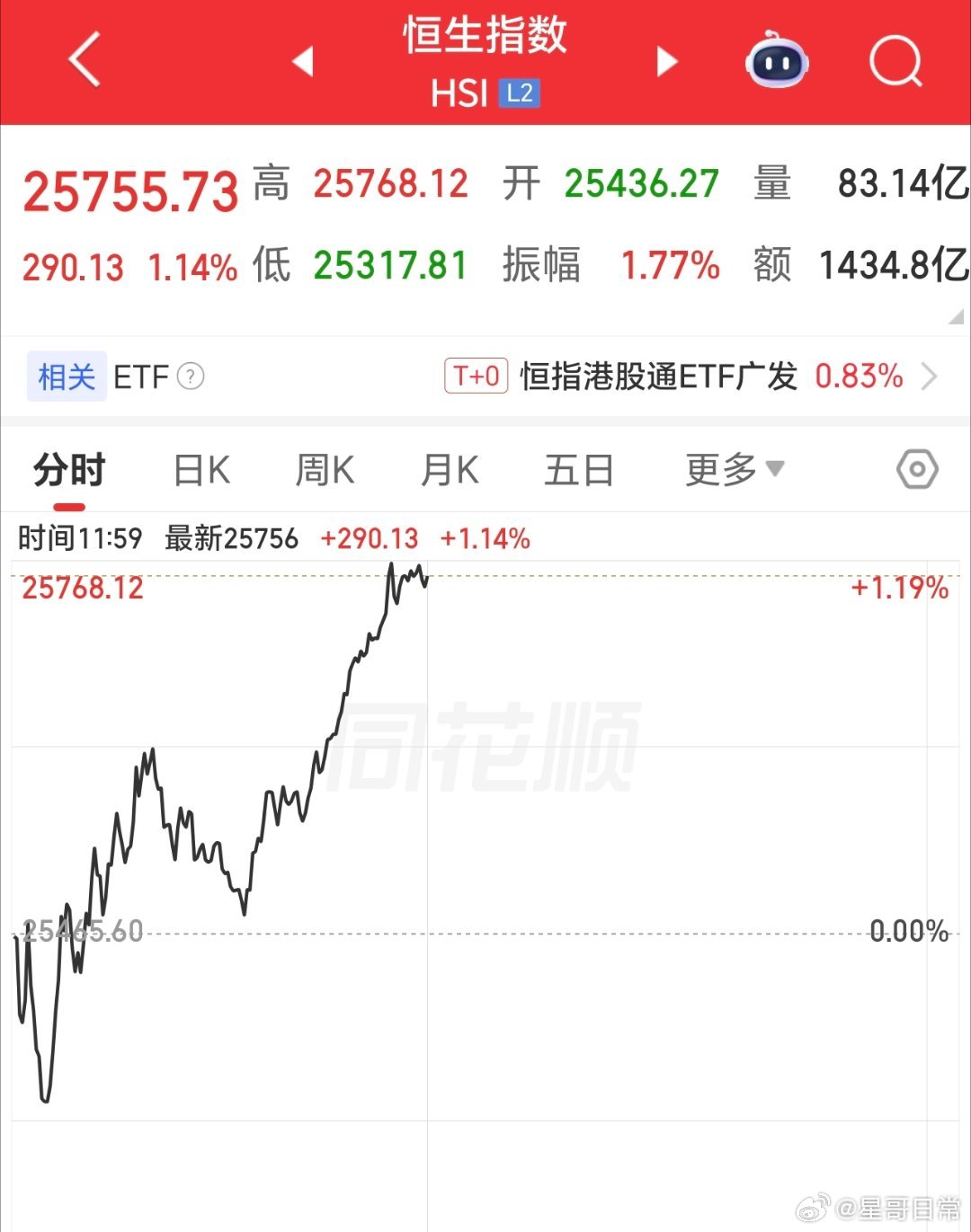 港股突然发力,对A股有积极影响,下午预计是回升的走势。