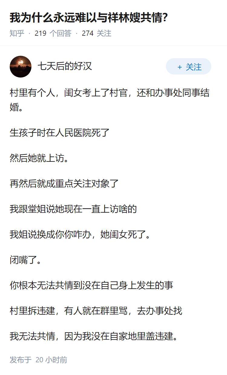 我为什么永远难以与祥林嫂共情?