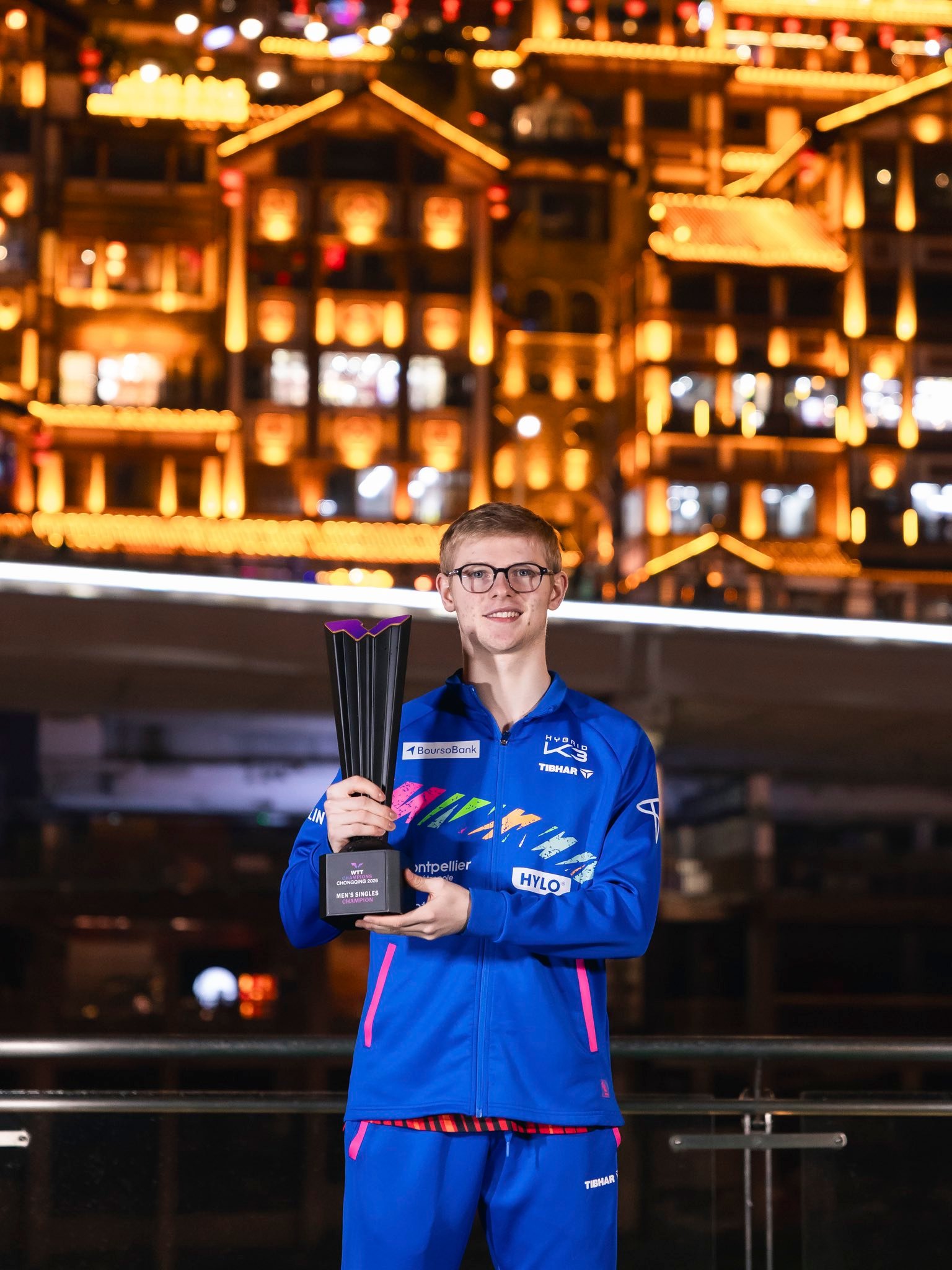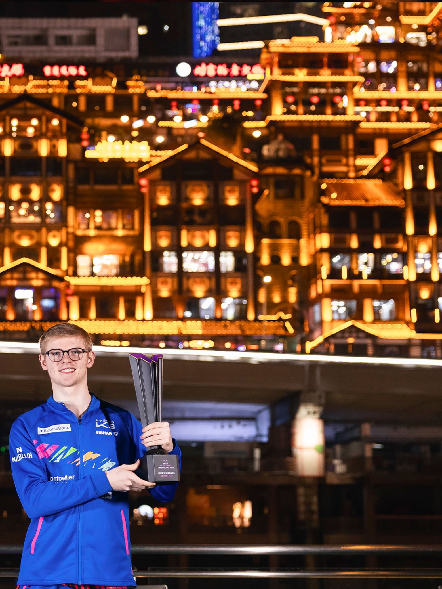 F勒布伦重庆夺冠后发博WTT发了男女组冠军🥇照片。拍得好?非常“重庆”!¹ 男