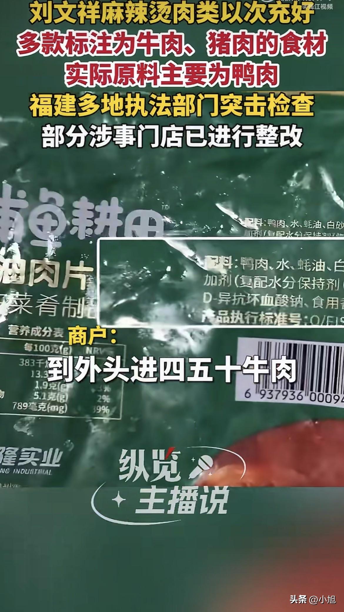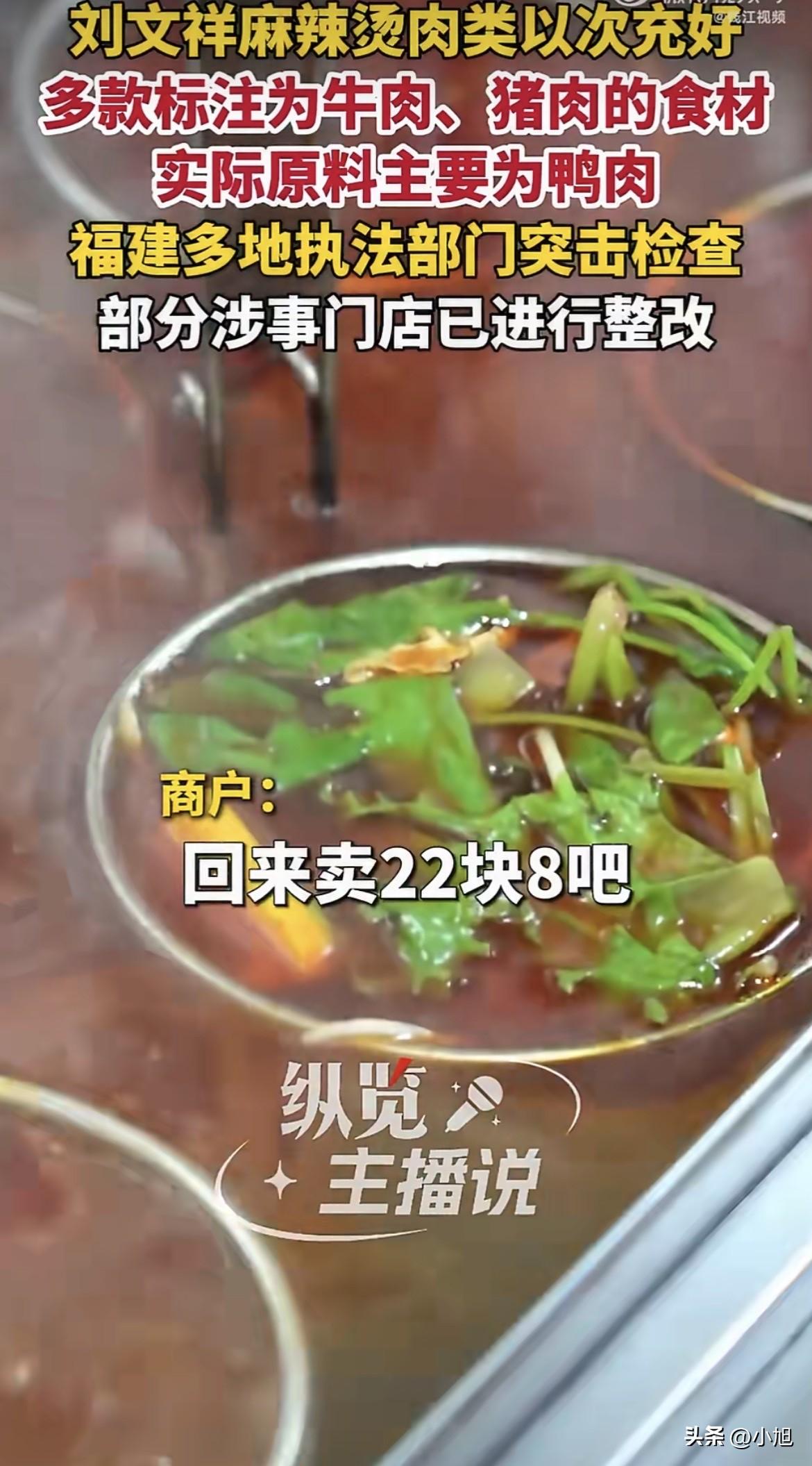 “牛肉都三四十一斤,我们才卖二十一斤,你觉得有可能是纯的牛肉吗?” 这句话问出来的时候,店员可能是理直气壮的。在她的逻辑里,价格已经提前告诉你了,你自己心里没数吗?想吃牛肉,就得掏牛肉的价钱。又想便宜,又想真材实料,天底下哪有这种好事。 乍一听,好像有点道理。可仔细一想,这逻辑根本站不住脚。 二十一斤是你定的价,不是消费者逼你定的。你嫌利润薄,你可以涨价,你可以不卖,没人拿刀架你脖子上逼你非得卖这个价。但你既然标了“肥牛卷”,端出来说是牛肉,收了牛肉的钱,转头往碗里放鸭肉,这叫什么事? 便宜,从来不是作假的理由。只能说明你既想赚这份钱,又不想老老实实赚钱。 3月14号,刘文祥麻辣烫被撕开口子那天,厦门、漳州的门店后厨翻出来的东西,让不少人心里堵得慌。那些外卖平台上标着“肥牛/牛肉”的卷,店员拍着胸脯保证是牛肉的东西,包装袋上的配料表写得明明白白——鸭肉。还有那些“黑椒肉柳”、“闽南肉羹”、“蚝油肉片”,店员介绍起来一套一套的,全是猪肉,结果配料表清一色写着鸭肉。连鸡鸭都分不清楚的“蚝油肉片”,在这个平台标鸡肉,在那个平台标鸭肉,问就是“没时间改”、“平台搞错了”。 更绝的是,记者刚指出来,店员嘴上答应得好好的,说下次一定如实告诉顾客。转头新顾客进门,那套“猪肉牛肉”的说辞又原封不动端上来了。改什么改?能糊弄一个是一个。 供货商抖得干净利落,纯牛肉卷进货28一斤,鸭肉风味卷只要7块,四倍的差价。刘文祥全国2800多家加盟店,总部只管卖底料和几款特色面条,剩下的肉菜全是店主自己进货。一年时间,门店从1800家飙到2800家,扩张速度跟坐火箭似的,可总部对加盟店的管控呢?基本等于放手不管。 除了底料和调味料必须统一采购,其他食材随便买,装修都能自己“按葫芦画瓢”。加盟商想多赚钱,怎么办?找便宜的。7块钱的鸭肉卷和28的牛肉卷,傻子都知道选哪个。反正端出来红呼呼一碗,淋上那黏糊糊的东北老式麻辣烫汤汁,谁能吃出来是鸭是牛? 乌鲁木齐那家被查的门店更离谱,外卖平台上写着“真牛肉培根片”,结果查出来是“牛肉风味产品”,配料表里明晃晃两个字:鸭肉。除了食材作假,仓储环境脏乱、过期产品没清理,各种问题一堆。 3月15号那天,北京国贸建外SOHO那家店,市场监管的人突然上门,要营业执照,查牛肉丸鱼丸。店员被问知不知道为啥来查,低声说“谁知道呢,给我也吓一跳”。吓一跳?是真不知道还是装不知道?福建那边都炸锅了,热搜都挂一天了,这会儿“吓一跳”,是不是有点晚了? 就在一个月前,刘文祥还是短视频平台上的顶流。周小闹那个“紫薯精”角色,一句“如果全世界都指责你,我就带你去吃刘文祥”,暖了不知道多少人的心。 周小闹当时还回应过,说刘文祥没给广告费,有人想谈合作,但他不想让视频变味儿,也不想让刘文祥变味儿。结果呢?视频没变味儿,刘文祥先变味儿了。 事情爆出来之后,刘文祥那边回应了,说是“个别门店”的问题,该停业的停业,该取消加盟合同的取消。个别门店?厦门有,漳州有,乌鲁木齐有,北京那边虽然还在嘴硬说“我们是牛肉,有检测报告”,可谁知道查下去会是什么样?两千多家店,总部只控底料和几款面条,肉菜全让加盟商自己买,这种“轻管控、重扩张”的模式,出事儿是早晚的事。 有评论说得狠:连锁不是简单的复制粘贴,没有标准化的品控,再大的品牌版图也只是空中楼阁。 律师也出来算了笔账。用鸭肉冒充牛肉,掺假掺杂、消费欺诈、虚假宣传,三宗罪跑不了。月销几千单的店,销售额早就过了五万的门槛,够得上生产、销售伪劣产品罪的立案标准了。那些理直气壮反问消费者的店员,不知道现在还能不能笑出来。 其实大家心里都有杆秤。二十块钱的东西,谁也没指望吃出和牛的口感。但你得卖什么就说什么,不能把鸭肉硬说成牛肉,把消费者当傻子糊弄。店员那句“你觉得可能是纯牛肉吗”,表面上是反问,实际上是把责任往消费者身上推——你自己贪便宜,被骗活该。 可问题是,消费者凭什么要替你算这笔账?菜单上写的是牛肉,收的钱是牛肉的价,到你嘴里就成了“你自己心里没数”?便宜不是商家作假的理由,更不是你理直气壮反问的底气。 3月14号晚上,福建那边市场监管已经动了,突击检查,责令整改,拉网式排查。3月15号,北京多家门店紧急清理后厨,冷藏柜里的肉片肉卷明显少了,荤菜大多换成丸滑制品。怕了?晚了。 有分析师说得在理:这些都是连锁经营的基本功,如果没有打好基础、检查好各方面的磨合,“开快车”肯定容易“翻车”。刘文祥这一跤摔得不轻,就看能不能爬起来了。 最后想说,别拿“便宜”当挡箭牌。二十块钱的东西,你可以卖素菜,可以卖丸子,可以明明白白告诉顾客“我们这价买不到真牛肉”。但你不能挂羊头卖狗肉,被抓了还怪顾客想占便宜。 你去吃过刘文祥吗?如果知道碗里的“牛肉”其实是鸭肉,还会不会再进那家店?