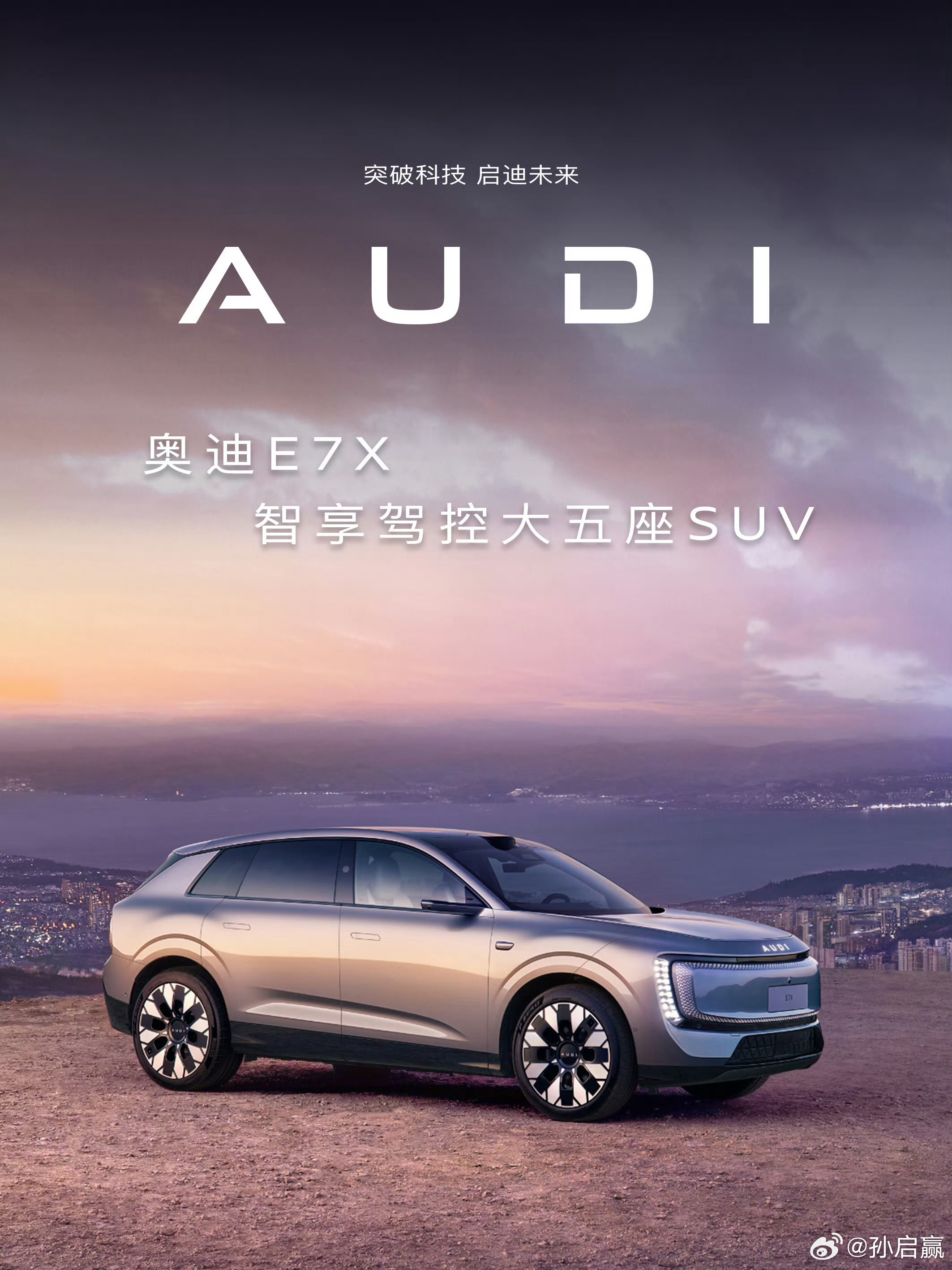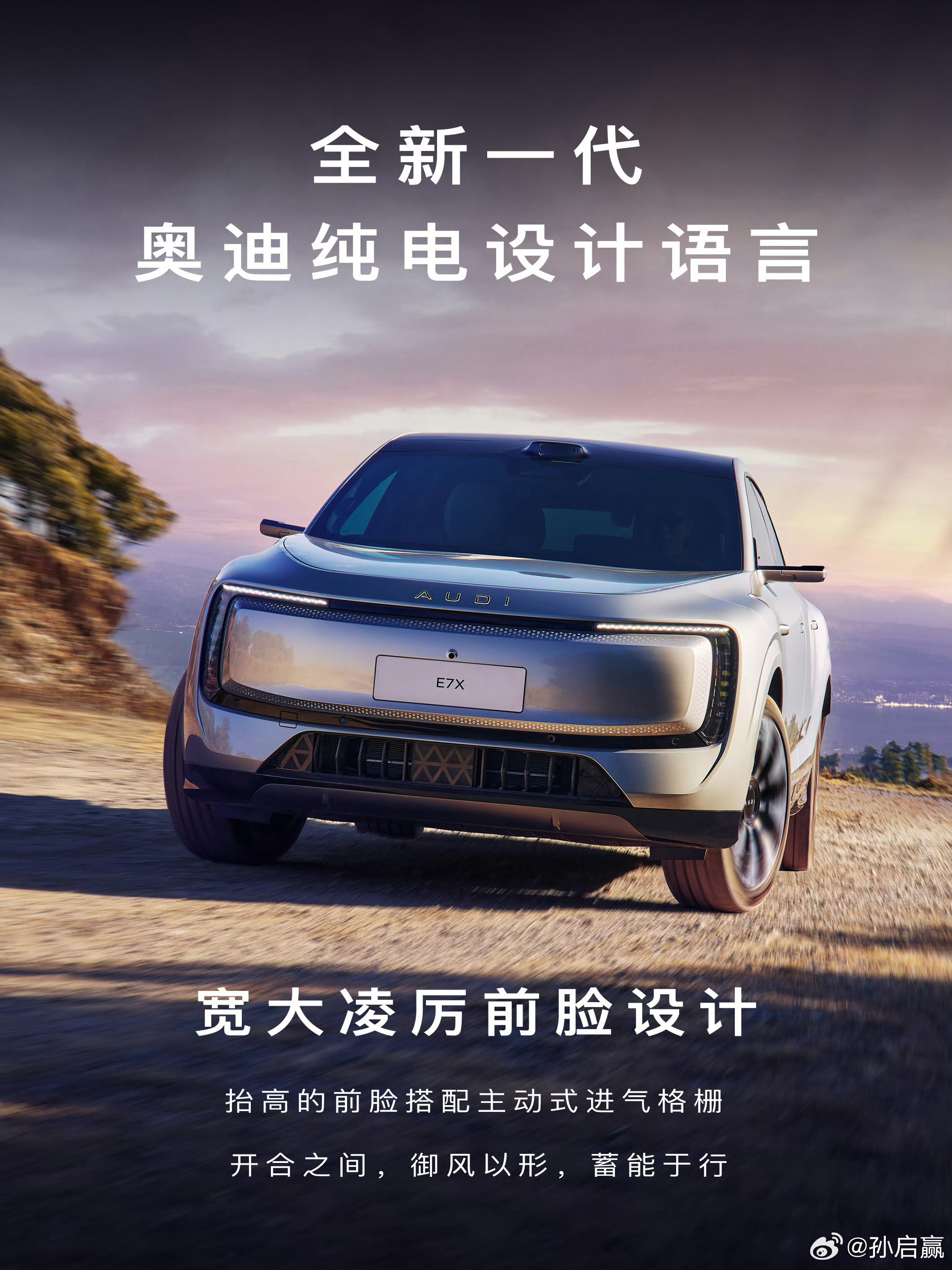 奥迪E7X,纯电大五座SUV,造型依旧大胆前卫。5米长,百公里3.97秒,智能四驱,900v架构,751公里续航,数值上看起来很全面。奥迪E7X