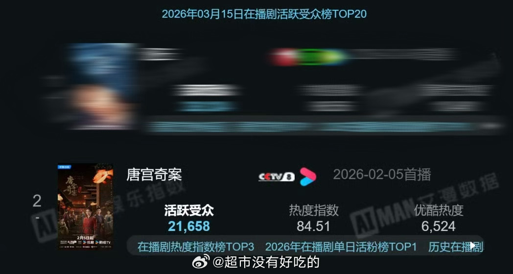 白鹿唐宫奇案超点完一段时间了,李佩仪角色热度继续登顶中唐宫奇案艾漫活跃指数昨天T
