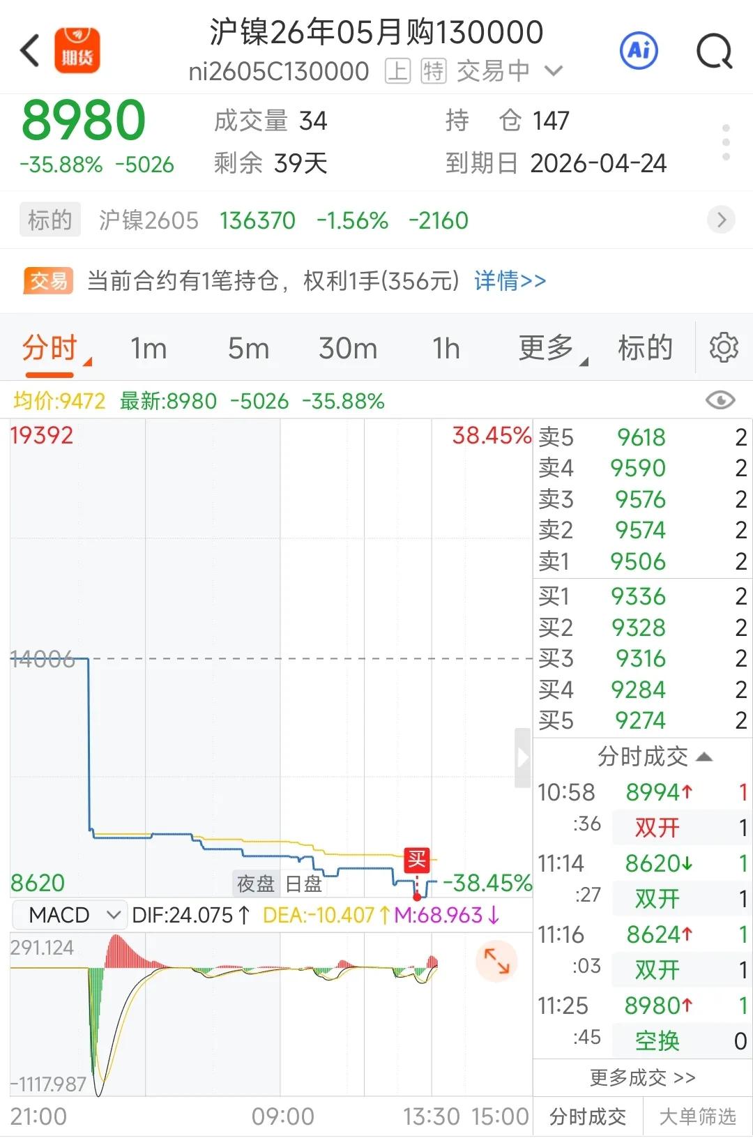 期权什么价格算合适?拿镍来说,印尼纯成本价在120000块/吨左右,国内成本在135000块/吨左右,现货在141000/吨左右,虽然国内高库存,但印尼限制配额,成本有支撑,虽高库存,但那是低等镍,高端镍目前库存还是缺的,就算到期现货略高3000,也就是138000左右,而目前到5月就算深砸,5月前应该也有到至少138000的机会,如果到了,时间成本和预期,应该会有不错的收益,这个价格相当有性价比,8000左右看130000,中长期是不错的入手点,看到后赶紧买个观察。如果5月库存降下来,应该会冲击前高,那就是至少3~5倍行情了,富贵险中求,这个随便砸,越砸越加仓,期现差历史一般最高3000左右,目前看,安全边际很高,除非出现黑天鹅。远期预期价格太高就没性价比了。看准了,就埋单成交后输赢皆有天定,没成交就与自己无缘