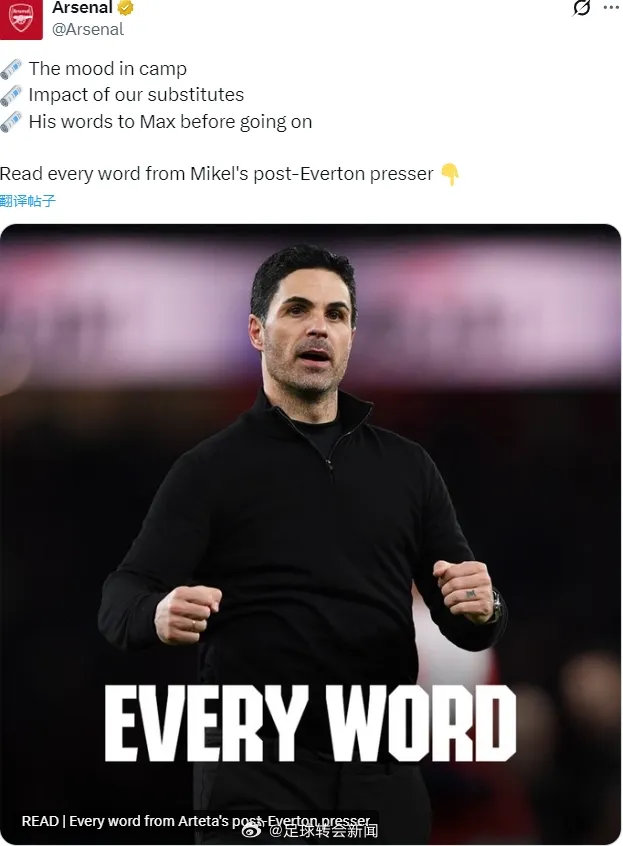 阿尔特塔出席了赛后新闻发布会,我们来看看阿森纳主帅重点谈到了哪些问题。