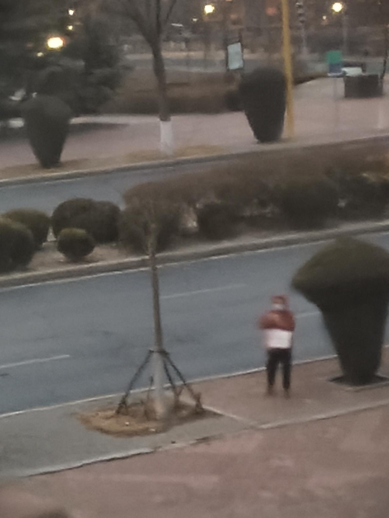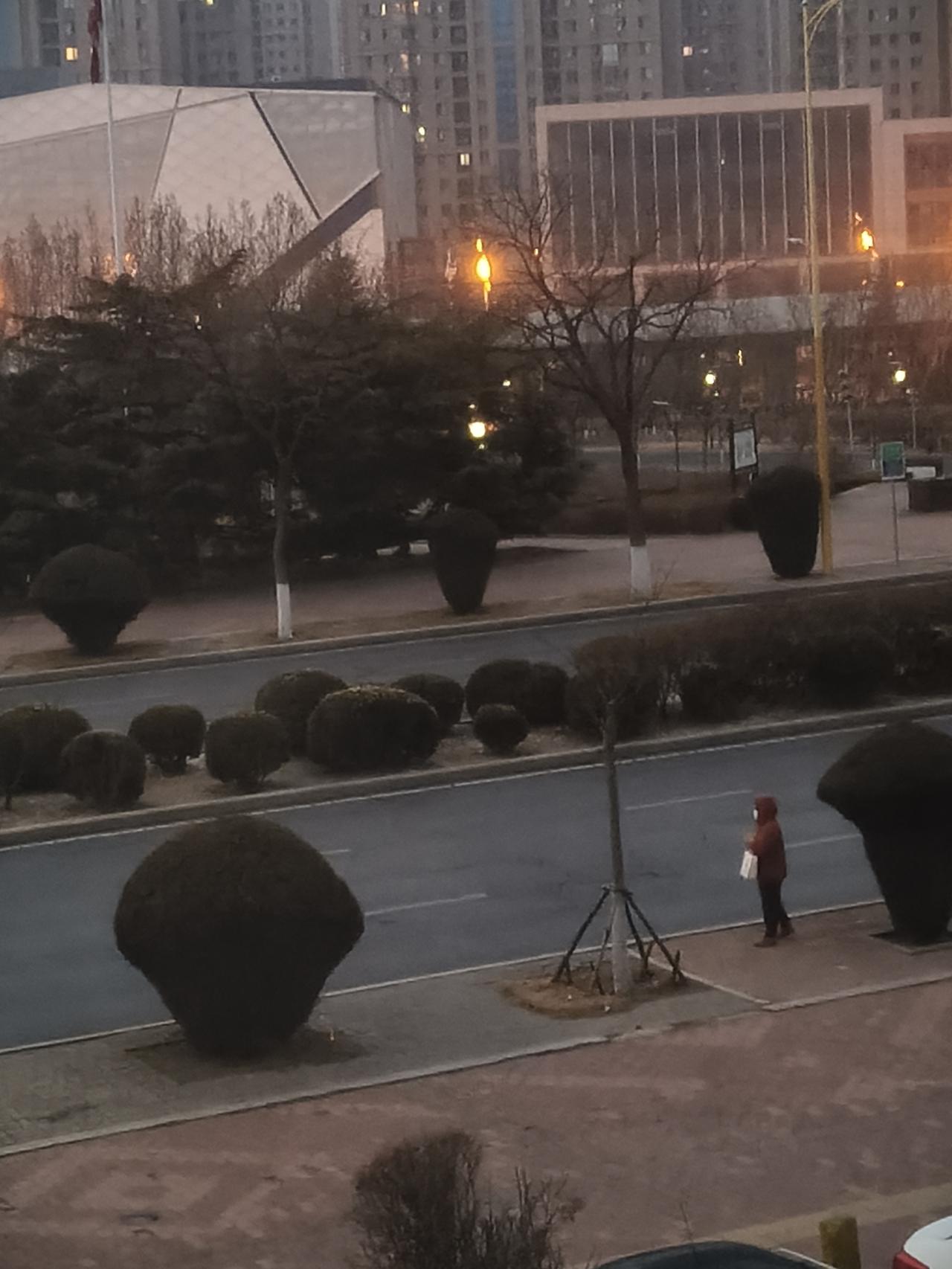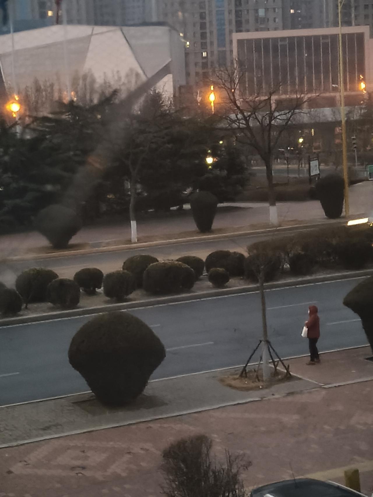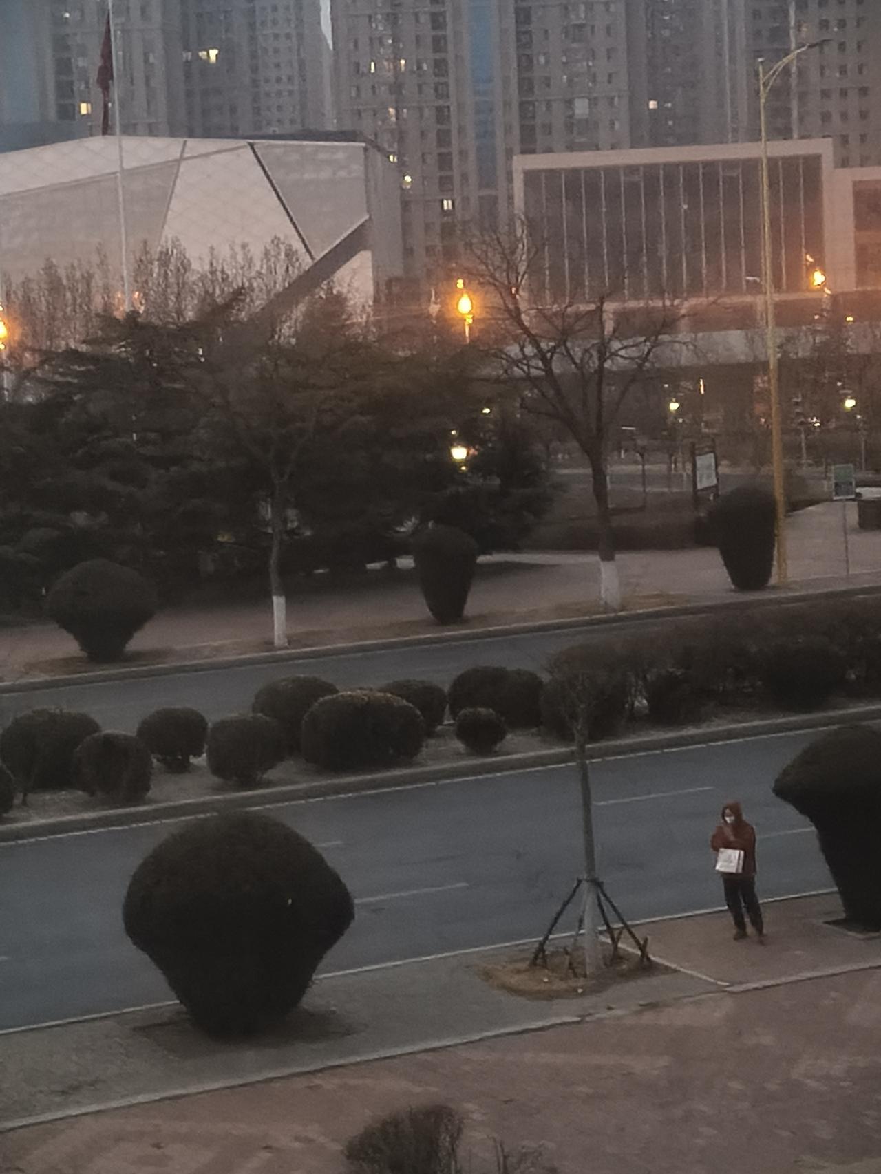 春寒料峭的早晨,城市马路边上早班的等车人