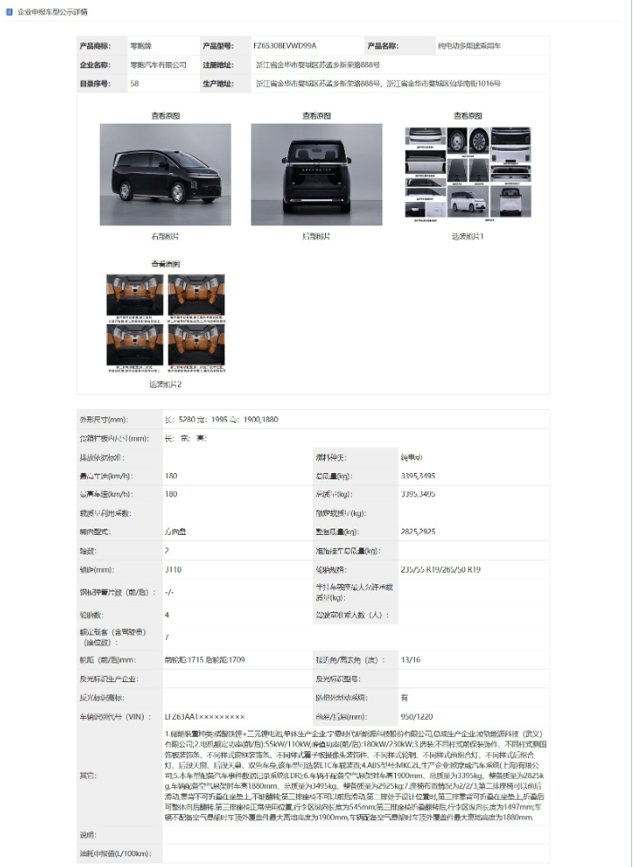 车若初见 零跑D99登陆工信部申报信息,新车定位大七座MPV,采用2+2+3座椅