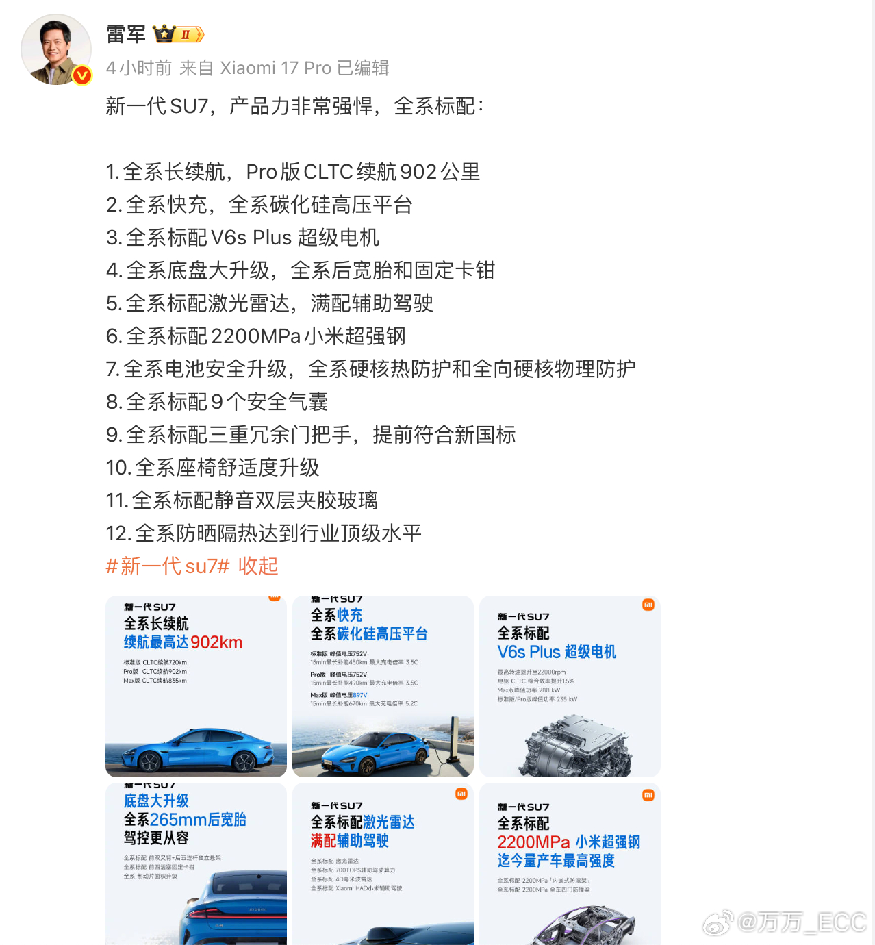 雷总这是一口气把新SU7全部发布完了....