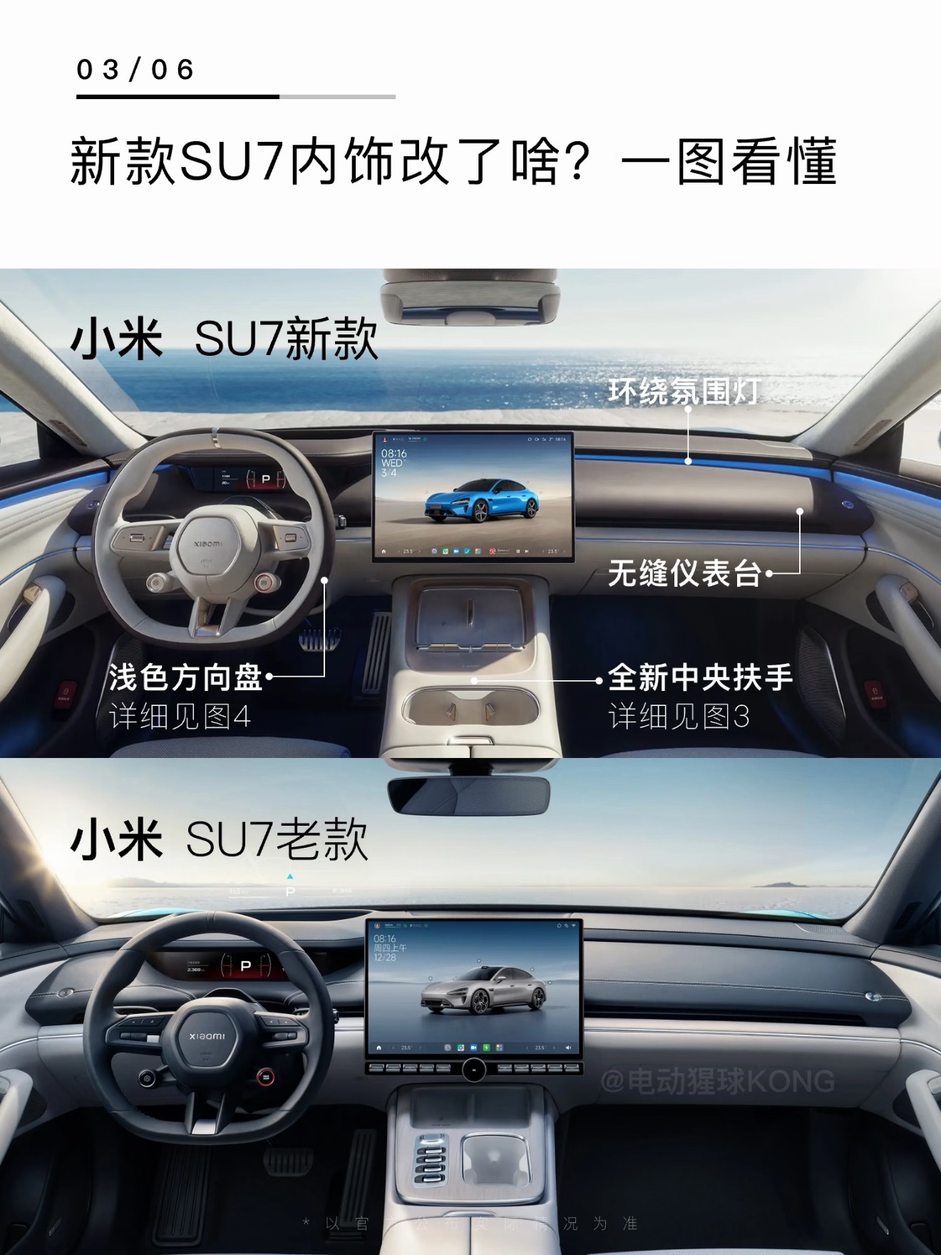 其实老款就已经很能打,新款直接把内饰质感拉满档。3月19号上市,喜欢内饰精致感的,可以重点期待一下了。雷军表示新SU7内饰变化巨大