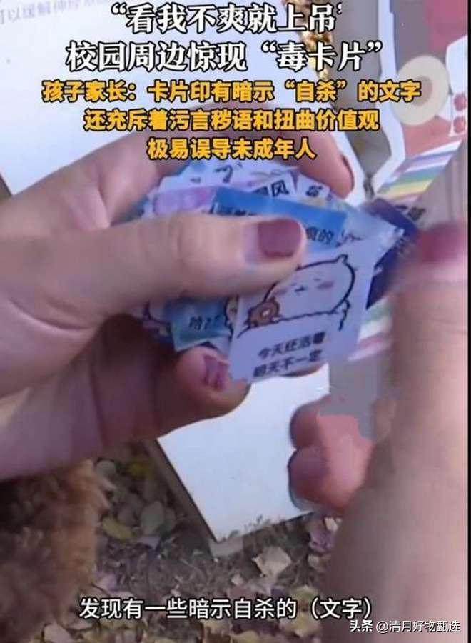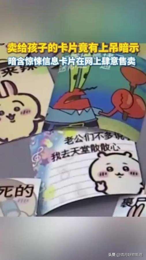 南京小学生购买的校园周边小卡片,外表可爱,竟印上“上吊”“卧轨”等自残轻生暗示,导致孩子言语偏激。此类不良卡片多地热销,多为三无产品,监管部门已下架处理,电商平台也被建议加强审核。 这起事件令人深感忧虑。校园周边本应是孩子们纯真快乐的天地,却出现了带有“上吊”“卧轨”等自残和轻生暗示的卡片,严重影响了孩子们的心理健康和价值观形成。孩子们处于成长的关键阶段,接触到这样的负面信息,容易引发言语偏激甚至模仿行为,给家庭和社会带来隐患。 更令人担忧的是,这类不良卡片多为“三无”产品,缺乏正规生产资质和有效监管,流通渠道广泛,电商平台审核不严,导致问题产品容易进入校园周边市场。这不仅暴露出监管漏洞,也提醒我们必须加强对校园周边商品的质量和内容管理。 监管部门及时下架处理是必要且及时的举措,但更重要的是建立长效机制:一方面,相关部门应加大对校园周边商品的监管力度,严厉打击违法违规产品;另一方面,电商平台应完善审核机制,杜绝类似产品上架销售;学校和家长也需加强对孩子的心理健康教育和引导,帮助他们树立正确的价值观。 面对这样的社会问题,我们每个人都有责任共同守护孩子们的健康成长环境。你怎么看待校园周边商品的监管问题?你认为学校和家长应如何更好地预防和应对类似情况?欢迎分享你的看法和建议,让我们一起为孩子们营造一个更加安全、健康的成长空间。
