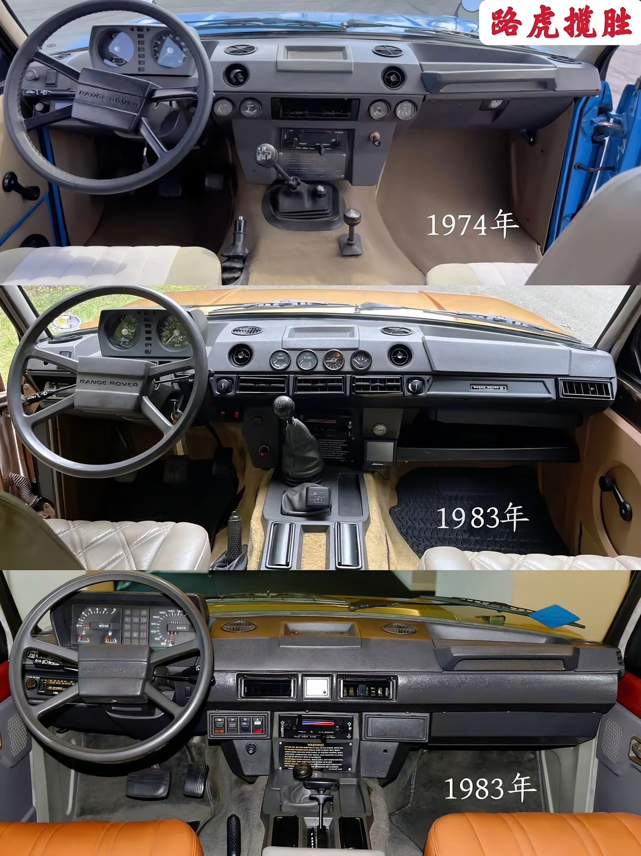 从1974年开始,路虎揽胜的内饰变化,不得不说以前的设计真的非常经典,哪怕放在现