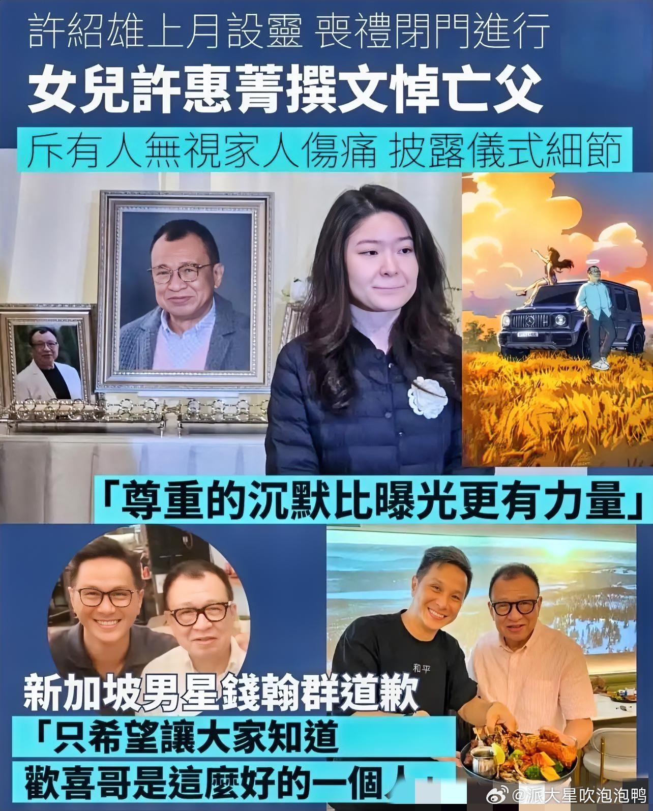 16日,《正义女神Themis》正式开播,许绍雄女儿许惠菁发文,明确表示随后会用父亲的公众账号与大家持续互动,希望多支持父亲最后一部作品,此举也是为了纪念父亲,把思念之情转化为公共纪念。