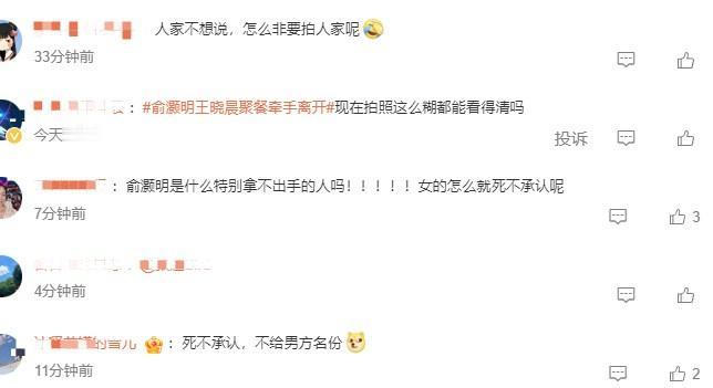 王晓晨这波操作让人看不懂了。。 去年9月份,俞灏明在微博向“晨”进行了公开表白,并晒出了女生无名指戴鸽子蛋钻戒的照片。 因为之前王晓晨和俞灏明被拍到过多次,她也没否认过,加上灏明对爱妻的这个“称呼”, 绝大多数网友认为,这个晨就是王晓晨。 然而,当记者就此事向王晓晨求证时,她既没否认,也没承认,而是含糊其辞的说了句, “除了自己的原生家庭之外,现在还没有步入到人生的下一个阶段。” 对于俞灏明的微博示爱,王晓晨也没有给予任何回应,弄得男方也很尴尬。 网友(尤其是灏明粉丝)当然不高兴了,就有人发了微博,吐槽她 “热搜买到飞起,就是不回应恋情”。 结果这姐姐把人家告了??? 现在的明星也太蛮横了吧,这样的评论都要被告? 那以后是不是只能说“姐姐好美”“姐姐演戏真棒”这样的话了?