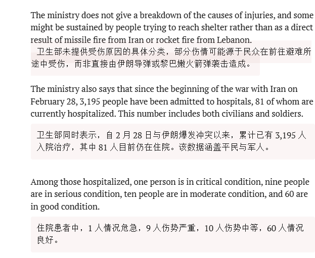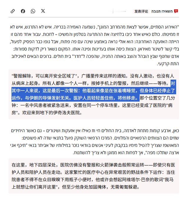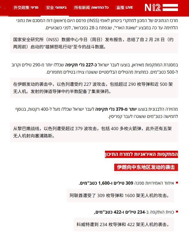 🔻看看以色列12频道描述搬到地下室的医院文章中,是如何轻描淡写一个人的死亡的——报道注明:与伊朗无关。🔻根据以色列媒体提供的数据,开战以来,以色列遭受约 227 波攻击,包括超过 290 枚导弹和近 500 架无人机。发射的弹道导弹中约半数配备了集束弹药。从黎巴嫩方向,以色列遭受超过 379 波攻击,包括 400 多枚火箭弹。阿联酋遭受了 309 枚导弹和 1600 架无人机的攻击。科威特遭到 234 枚导弹和 422 架无人机的袭击,🔻根据以色列卫生部门的最新数字,自冲突开始以来,以色列已有约3,195人被送往医院接受治疗。伊朗称440公斤60%丰度浓缩铀被埋内塔尼亚胡发视频自证在世海外新鲜事中东现场直击