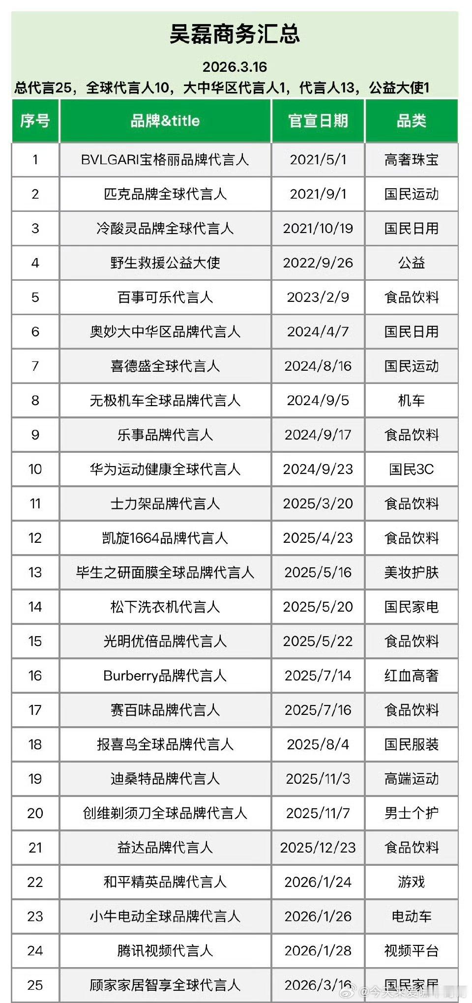 吴磊商务真好,25个代言每个都是大牌,他国民度在95生里是top的