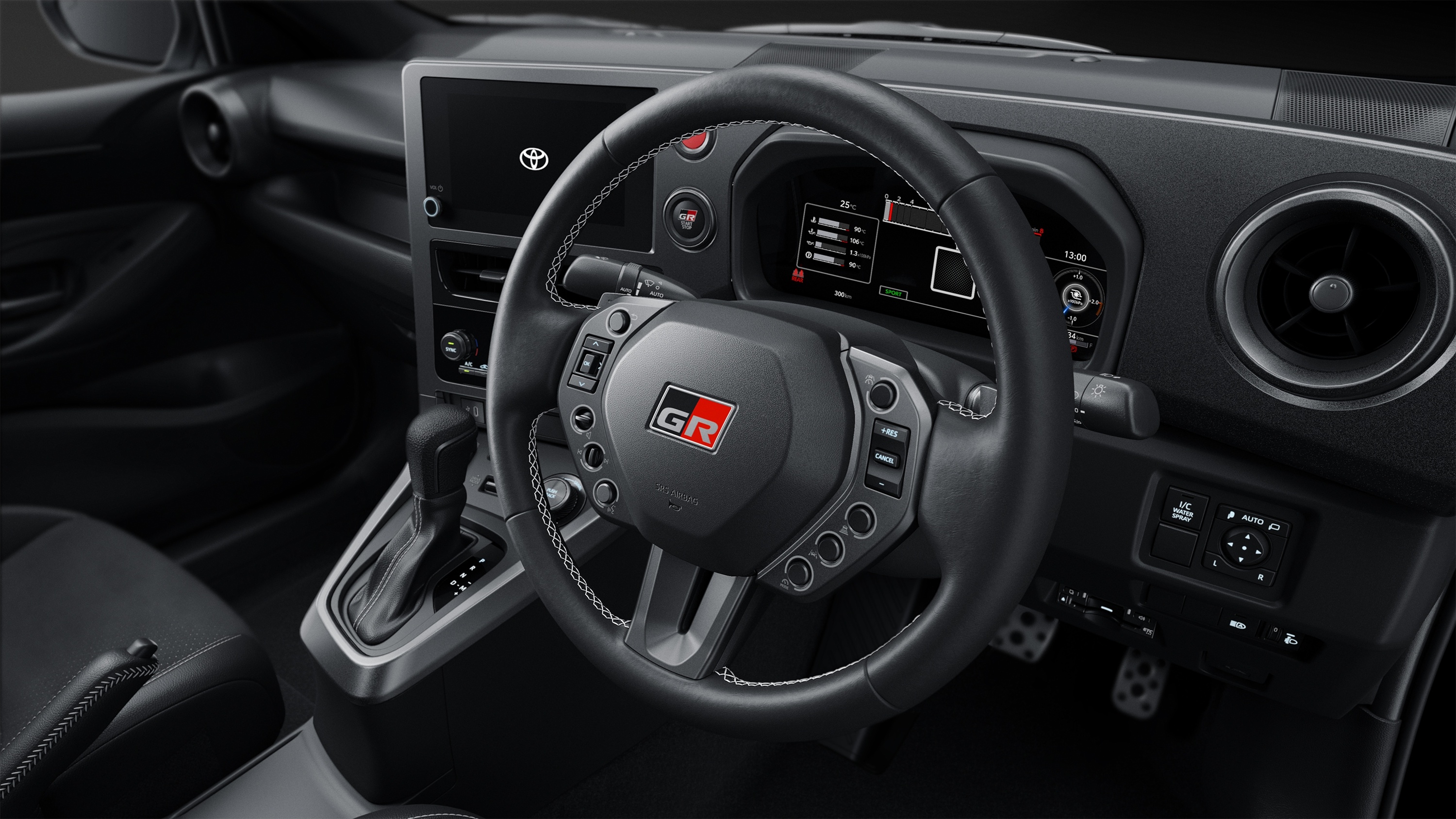 ❇️ 全新设计GR赛化方向盘,直径变小,提升握持手感,功能按键改成独立布局并带背光设计增强操作便捷性与可视性。