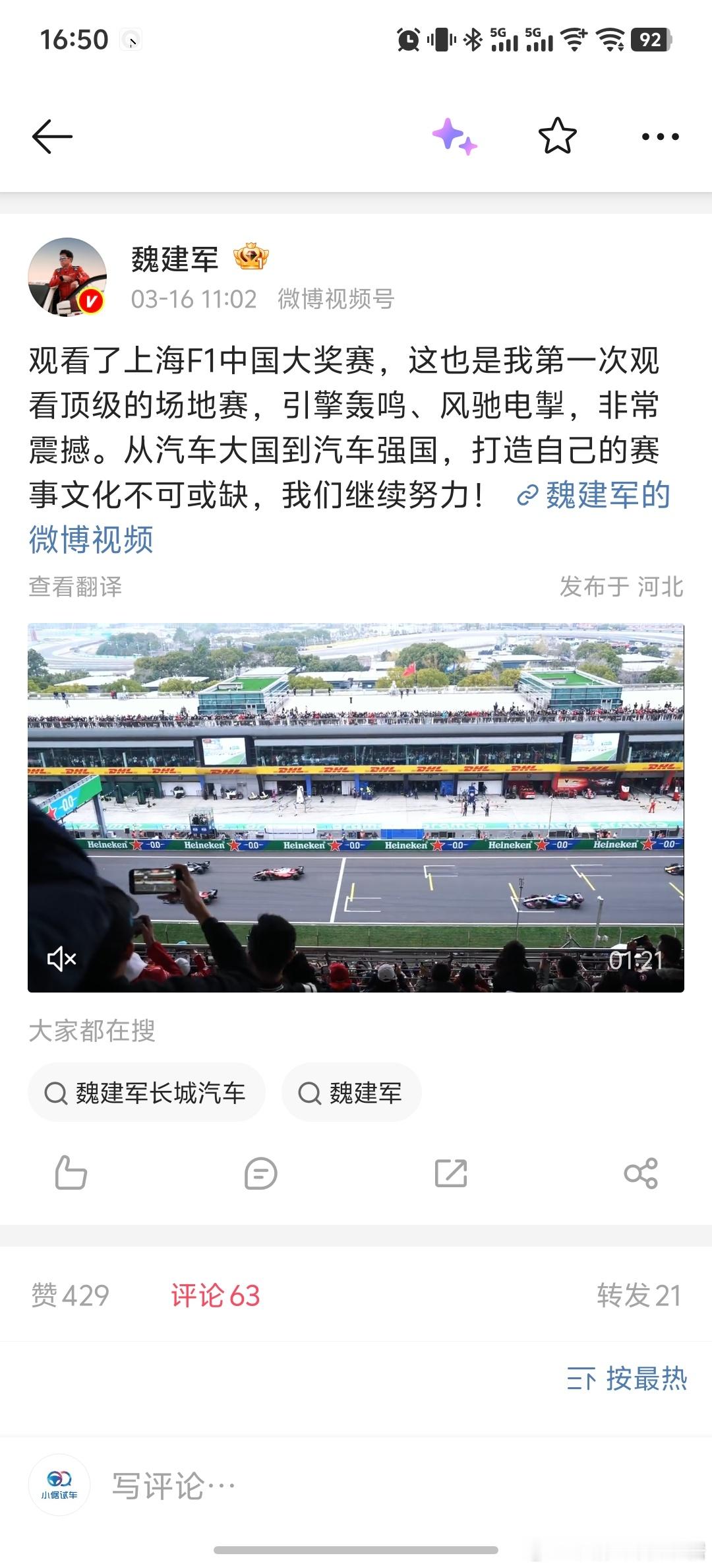 f1正赛F1f1中国大奖赛倨能聊大V聊车比亚迪长城汽车吉利