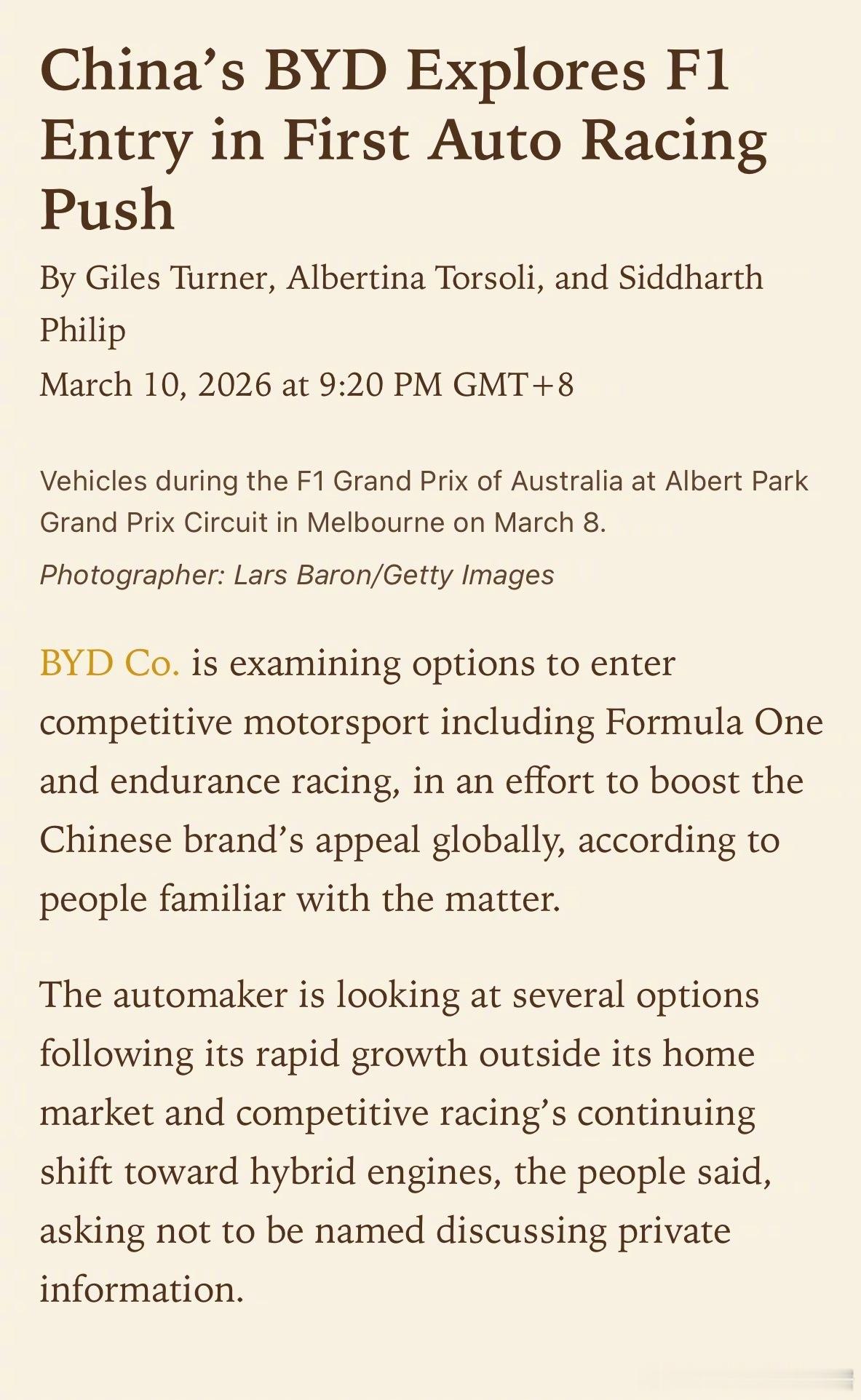 对上这个周末,大家都在讨论比亚迪、吉利、长城汽车这些中国车企有意向参与F1。看见大领导也到现场看比赛,跟FIA的官员有接触了。