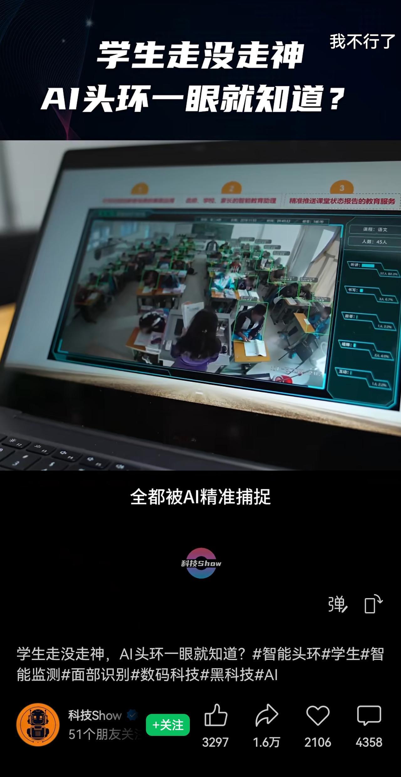AI+教育,是用AI对孩子进行全方位监控吗?这是把学校监狱化,必须叫停这种违反教育伦理,侵犯学生隐私,把学生当学习机器的胡来。那些开发这种检测仪的机构,是不是给公司创始人戴上这种检测仪,检测其脑子每天在想什么?把这种监测系统引入课堂的学校,又是怎么想的,真把这作为AI促进教育创新了吗?