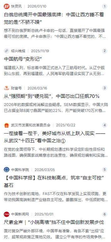 白俄罗斯总统一句话,撕开了中国最可怕的底牌!卢卡申科说:“中国让西方睡不着觉的,不是航母'下饺子',也不是芯片突围,而是中国'不急不躁'的可怕能力!”别人在赌明天,中国在布局十年后! 麻烦看官老爷们右上角点击一下“关注”,既方便您进行讨论和分享,又能给您带来不一样的参与感,感谢您的支持! 白俄罗斯总统卢卡申科近期在接受采访时,抛出了一个很有意思的观点。他说,现在让西方国家睡不着觉的,根本不是什么中国航母“下饺子”的速度,也不是芯片领域的技术突围,而是中国身上那种“不急不躁”的劲儿。这种说法确实让人耳目一新,也点中了很多人的疑惑:为什么面对各种打压,中国还能这么稳? 说起中国的航母发展,确实很有代表性。从2012年辽宁舰入列,我们才实现了“零”的突破;到2019年第一艘国产航母山东舰交付,我们学会了自主建造;再到2025年11月,全世界最先进的电磁弹射航母福建舰正式入列,中国海军进入了三航母时代。这一路走来,外界看到的是“下饺子”般的速度,但实际上,这是科研人员和造船工人一步一个脚印,按照几十年前就定下的规划,花了十几年时间才走完的“三级跳”。 芯片领域也一样。美国搞“小院高墙”,在高端芯片上卡脖子,换作别的国家可能早就慌了。但中国这些年干的事,就像是在织一张大网。从最基础的成熟制程芯片做起,现在全球主流制程(22纳米-40纳米)的产能里,中国的份额正在快速增长,预计到2028年能占到全球的42%。同时,在封装测试这个环节,中国企业已经冲到了世界前列,2025年全球前十的封测厂里,中国内地就占了五席。这就好比别人都在争着盖摩天大楼,我们先把地基挖深、把钢筋水泥的产业链捋顺,等市场风向一转,我们的优势就显现出来了。 这种“不急不躁”背后,藏着一套完全不同于西方的思维方式。西方国家受四年一次选举的影响,政客们更关心短期能拿出什么政绩。而中国是通过一个个“五年规划”,把国家发展的蓝图变成了可以接力跑下去的接力棒。就像武汉这几年把长江岸线从断断续续变成80多公里连续景观道的故事一样,一张蓝图绘到底,一茬接着一茬干,最后才能让规划从纸上落到地上。这种制度的连续性,保证了即使外部风云变幻,内部发展的齿轮不会乱转。 更可怕的是,这种战略定力已经刻进了科研人员的骨子里。你看贵州大山里的“中国天眼”,为了造出这台世界最大的望远镜,团队不仅在天文学发现上屡屡突破,还顺手把依赖进口的接收机核心部件——放大器给国产化了,性能国际领先,成本还大幅降低。还有在青藏高原海拔5250米处建起的阿里原初引力波观测站,科学家们花了十多年时间,硬是在北半球抢下了这个探测宇宙起源的“制高点”。这些项目,哪一个不是十年磨一剑?哪一个不是坐了很多年冷板凳? 正是因为有了这种长期主义的布局,中国在面对外部封锁时,才能表现出那种让对手心里发毛的冷静。美国越是制裁,我们的产业链反而补得越快。比如华为在被切断高端芯片供应后,并没有倒下,反而带着国产供应链一步步突破,从操作系统到各种零部件,都实现了自主可控。这就像高手过招,对方出的每一拳都打在棉花上,而我们却借着这个机会,把内功练得更扎实了。 卢卡申科作为见证了中国几十年发展的老朋友,他看到的不仅是高楼大厦和航母导弹,更看到了中国骨子里那种源自五千年文明的韧性。从大禹治水时形成的协作传统,到秦始皇“书同文”构建的文化认同,再到今天“十四五”规划对接“十五五”规划的国家治理,这种跨越千年的历史感,让中国在做任何决策时,眼光都比别人放得更长远。 所以说,西方真正焦虑的,不是某一个具体的突破,而是他们发现,自己面对的是一个不会因为一时得失而打乱节奏的对手。当别人都在赌明天、赌运气的时候,中国在默默布局十年后、二十年后。这种确定性,在这个充满不确定性的世界里,才是最让人睡不着觉的“底牌”。