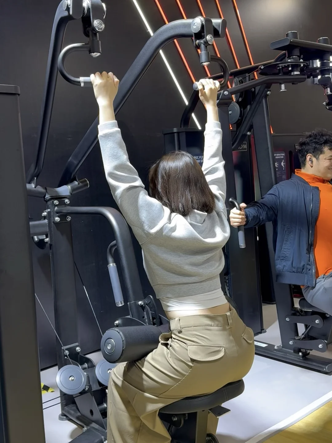 使用感受:使用过程中,会感觉到运动轨迹非常顺畅且精准。无论是推举还是下拉,阻力的传导都很均匀,滑轮和钢线系统运行顺滑,没有卡顿感。这种“精准引导”能有效帮助使用者找到目标肌群的发力感,确保动作标准,从而提升训练效率。