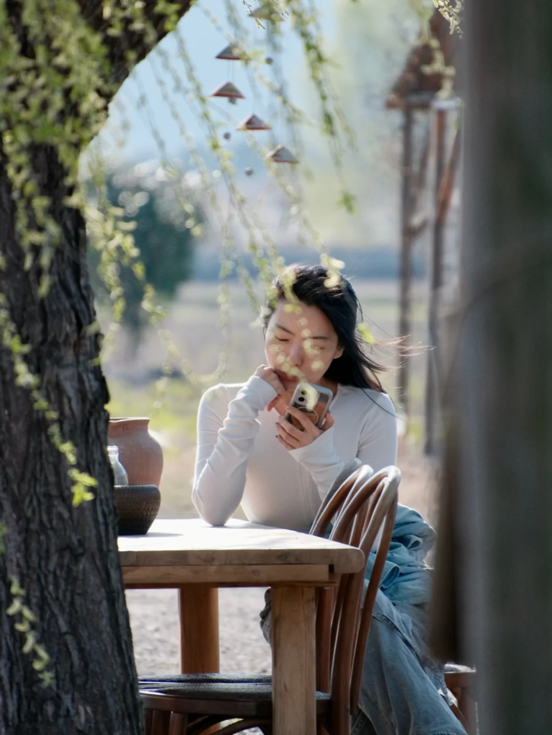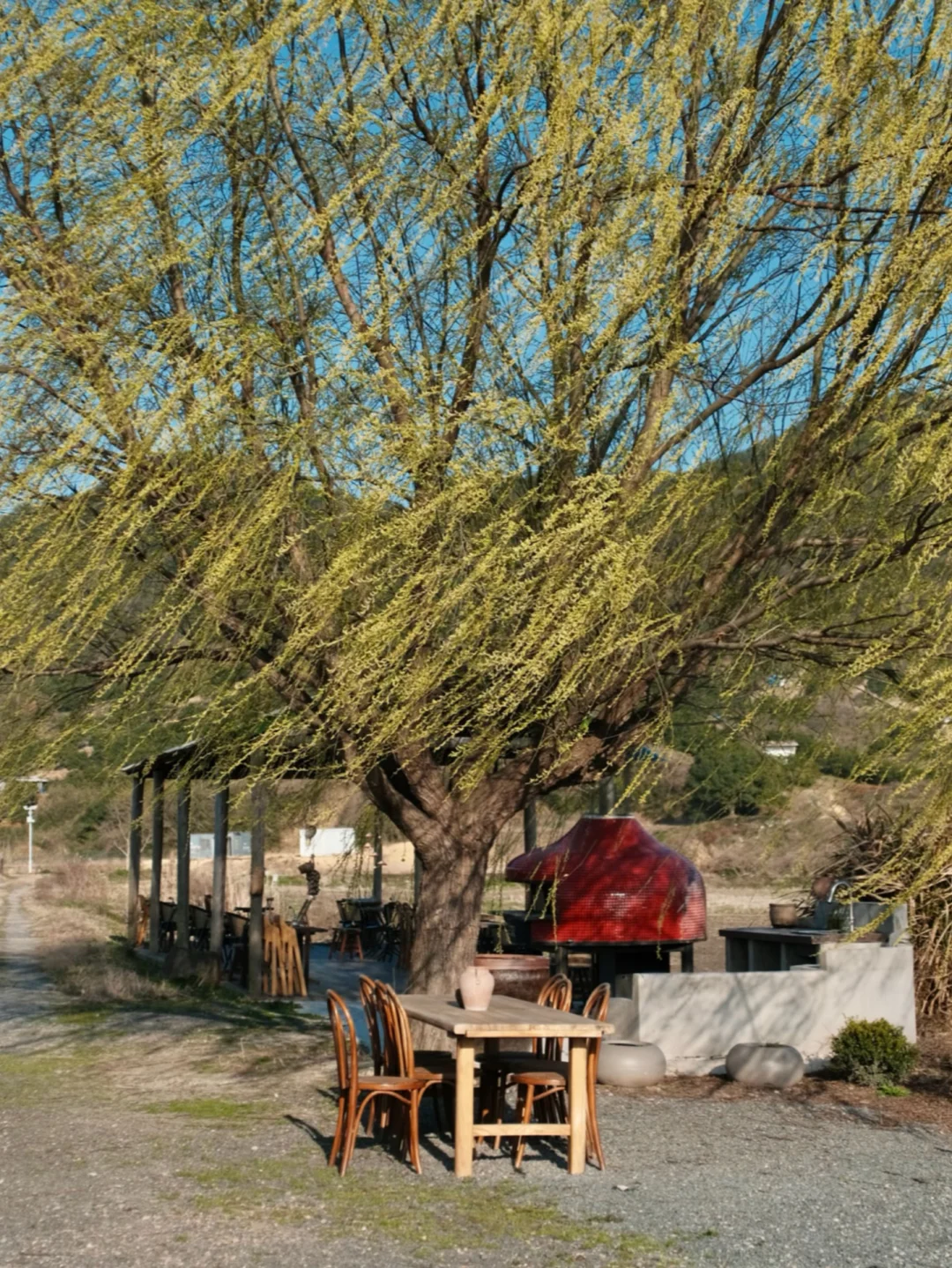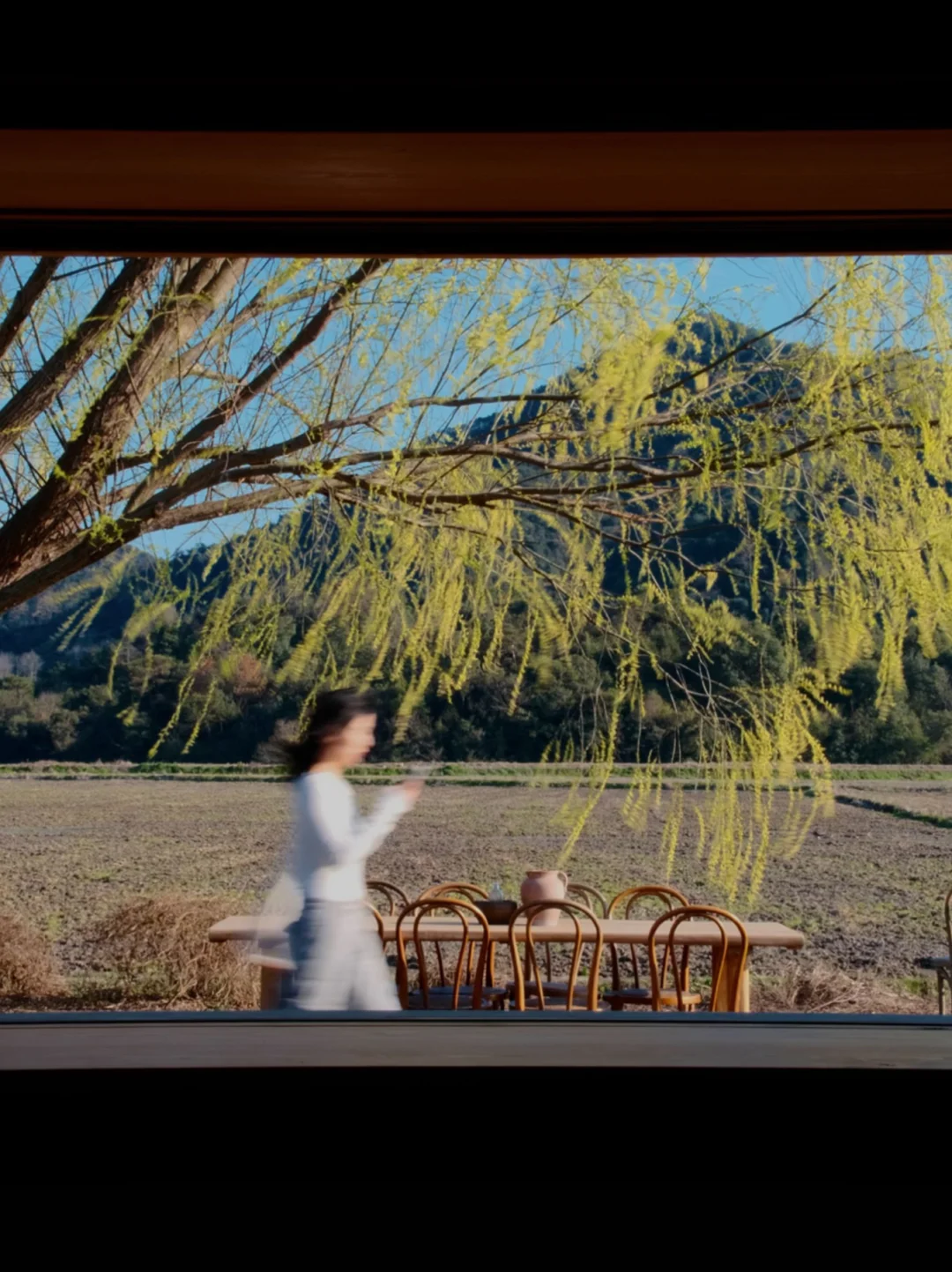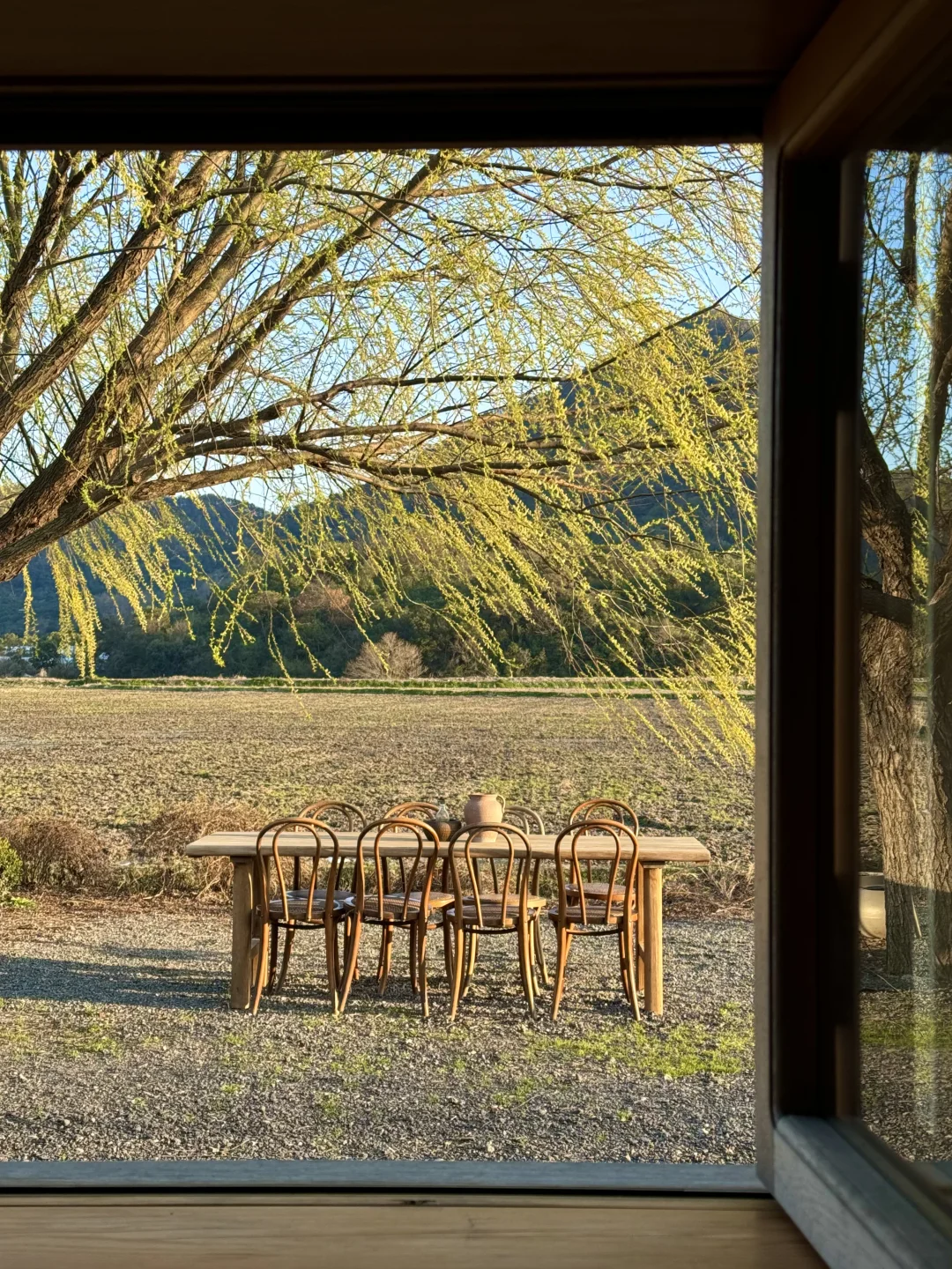 . 在周末人山人海的东钱湖 居然发现了一家 僻静无人的咖啡店☕️ 只有我们几个人 独享一整片稻田🌾 我愿称之为 宁波版“有风的地方”! . 门口有一棵很美的柳树🌳 伴着风铃声 音乐 没有任何嘈杂 氛围很好 从窗里望出去仿佛一副油画 栗子 葱油面好吃 室内也有日系茶室 老板除了店 还养了猫咪鸭🦆 . 如果说缺点 就是店很难找[呃R] 定位不准 迈过了长长的田埂 后来发现停车场左侧可以开车进 另外店里有人均低消哦 .