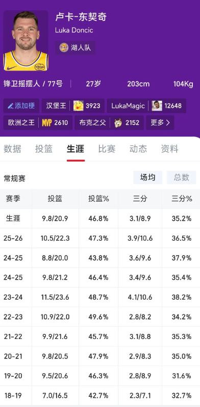 前面好多人说77打职业太早,26开始走下去路了,这种话比“31的老詹走下坡路了”还夸张一点点吧