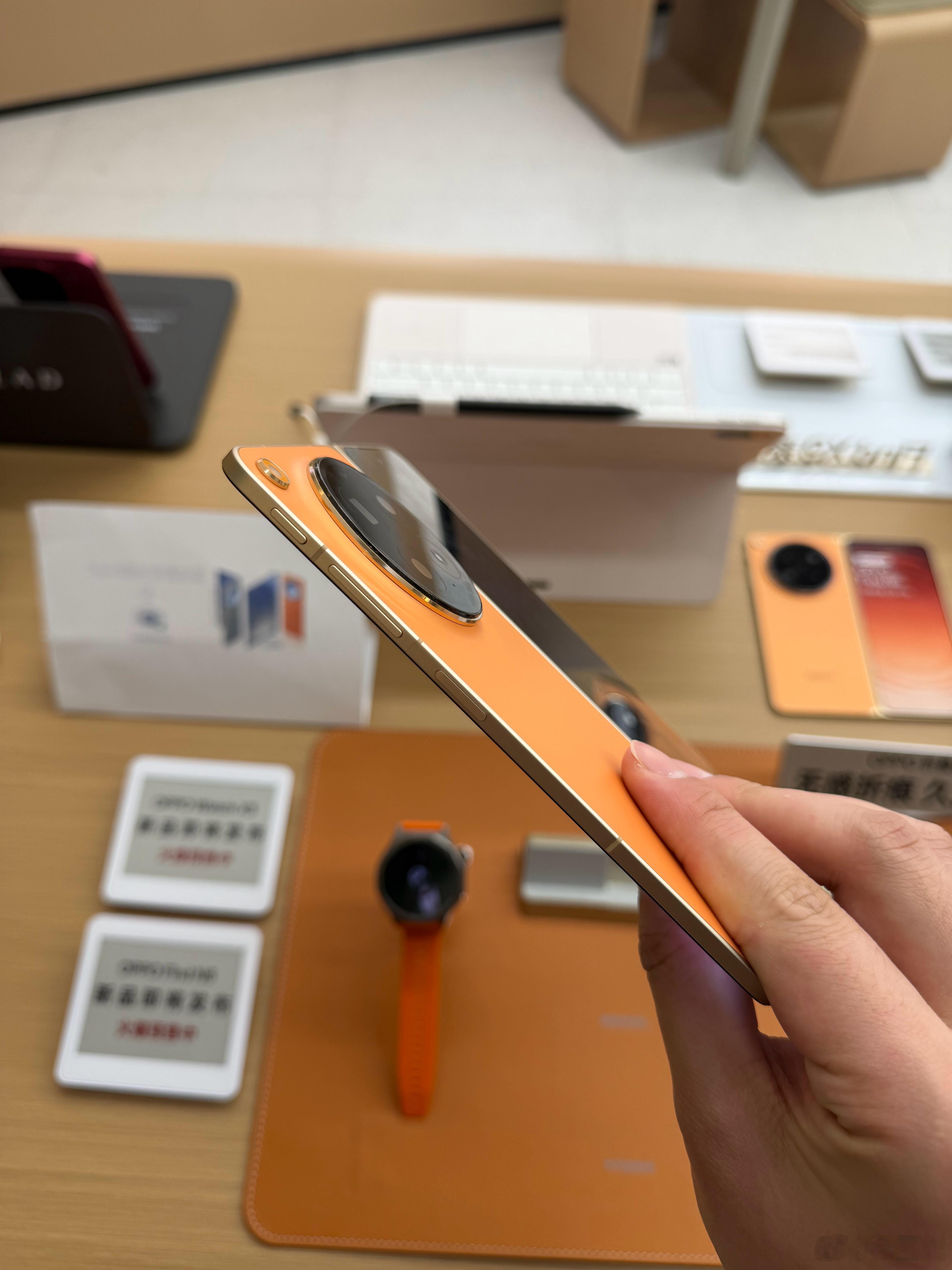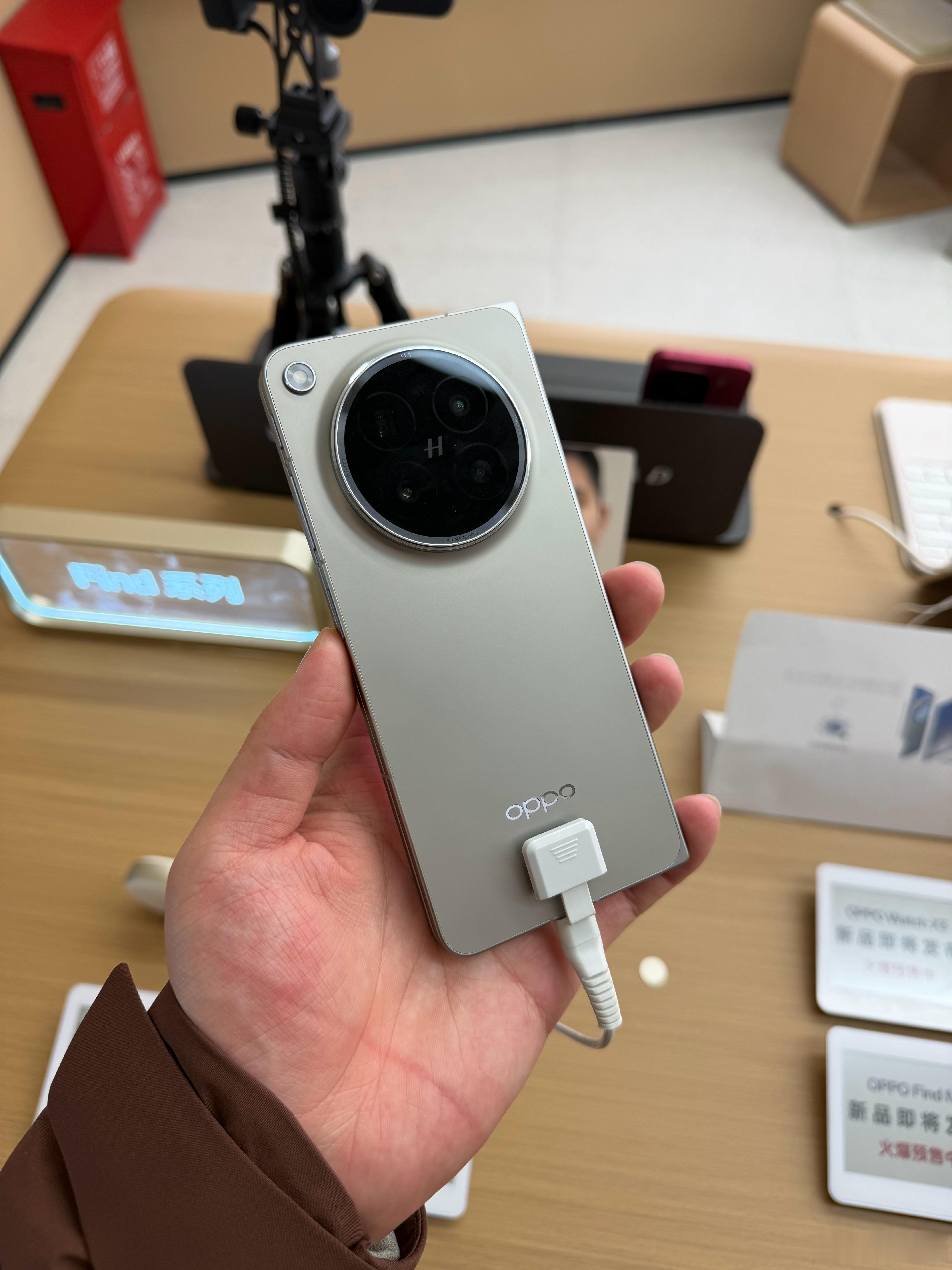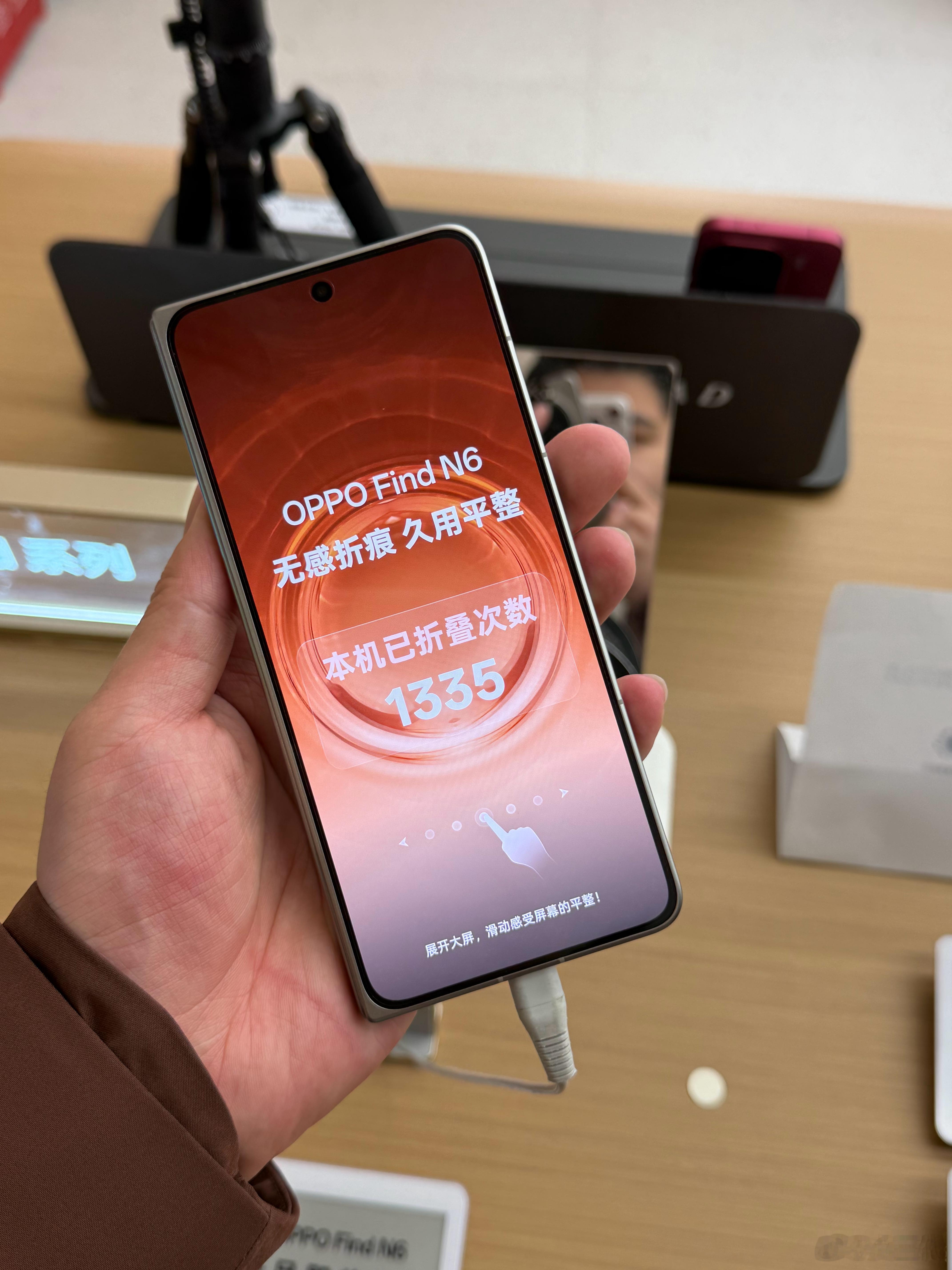 终于摸到Find N6真机了,银色质感无敌,比橙色好看太多。演示机会实时显示折叠