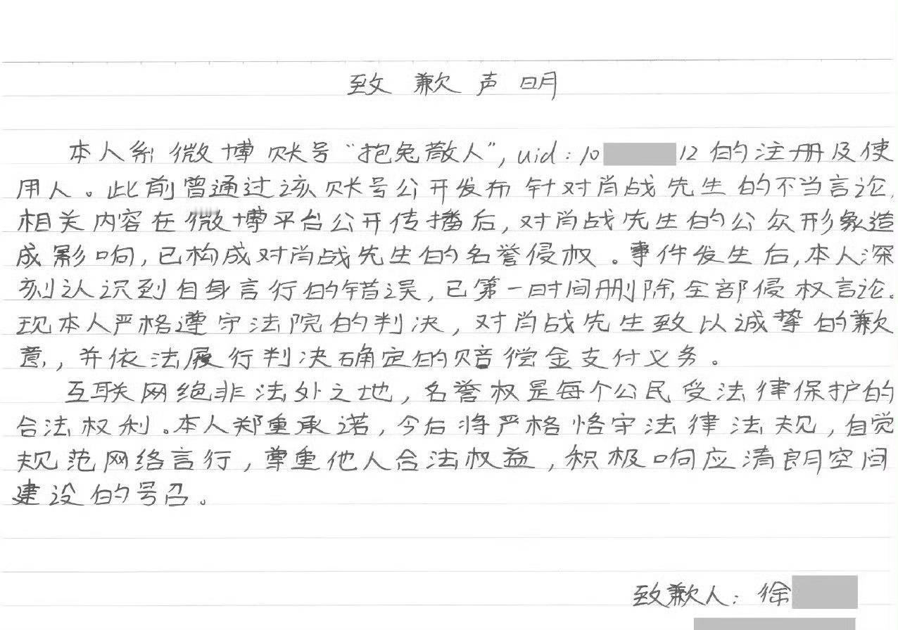 肖战黑粉手写道歉信,支持维权! 肖战黑粉手写道歉信