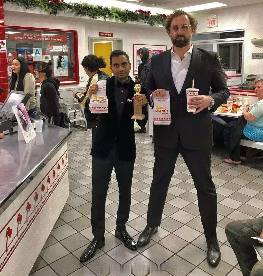几乎每个参加奥斯卡的明星,都会在晚会结束后,吃个In-N-Out汉堡。首先,这是美国加州的特色汉堡,明星们穿着礼服,为了上镜好看,都是空腹来的。结束后太饿了,虽然有晚宴,但是要接受采访、拍照和社交,根本没办法安心吃饭。