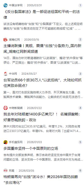 台湾回归在即!问题来了,当部队开始登陆,履行接管台湾的责任时,台湾还有30万武装力量,台独分子敢武力拒统么? 麻烦看官老爷们右上角点击一下“关注”,既方便您进行讨论和分享,又能给您带来不一样的参与感,感谢您的支持! 咱们得看看解放军现在的家底。以前咱说“跨海作战”难度大,但现在情况完全不一样了。这两年,大家通过新闻也看到了,解放军的演习越来越频繁,也越来越贴近实战 。特别是最近,055型万吨大驱像下饺子一样入列,比如109舰东莞舰、110舰安庆舰,刚服役就奔赴东海实战化训练 。这意味着啥?意味着咱们海军的区域防空、反舰能力已经是世界顶尖水平。再加上号称“东风快递”的高超音速导弹,那玩意儿速度贼快,根本拦不住。真到了那一天,第一轮火力打击,台军的机场、雷达、指挥中心这些关键节点,可能在几十分钟内就瘫痪了。没了指挥,没了防空,那30万部队再多,也就像没头的苍蝇,只能干瞪眼。 再说说那30万“武装力量”。听着挺唬人,但懂行的都知道,这里面水分不小。岛内的网友们经常吐槽,那是“草莓兵”,看着漂亮,一碰就烂。里面真正能打的常备部队没多少,大部分是后备旅,甚至还有需要临时动员的乡土防卫部队 。打仗打的是后勤,是体系。一旦开战,解放军必然是海、陆、空、天、电全维度的饱和打击。就像专家分析的那样,咱们现在演习的重点是“内控外驱”,也就是在台岛周边形成铜墙铁壁一样的封控圈,既要防止里面的“台独”头目逃跑,也要挡住外面想伸手的外部势力 。在这种立体包围下,那些后备旅能不能顺利动员起来都是个问题。就算动员起来了,面对解放军的远程火箭炮覆盖,他们拿什么守? 还有个更致命的问题——钱袋子。别看岛内有些人叫得欢,喊着要“脱钩”,要搞“非红供应链”,那纯粹是政治口号,骗老百姓的。咱们来看真实数据,根据海关总署公布的信息,2025年两岸贸易额突破3000亿美元大关,台湾地区从中赚的顺差高达1471.4亿美元 。岛内的名嘴都忍不住吐槽,一边喊着要跟大陆切割,一边赚人民币赚得盆满钵满 。台湾的经济命脉其实就捏在大陆手里,每年上千亿美元的顺差拿回去养着。一旦因为“台独”引发战争,大陆这边经贸往来一断,台湾马上就是经济危机。工厂停工,物价飞涨,老百姓日子过不下去了,那30万军人的军心士气从哪儿来?谁愿意为了那几个政客的理念,去拼个家破人亡? 国际上呢,别看美国政客们天天打“台湾牌”,真到了要签支票、负责任的时候,他们跑得比谁都快。最近美国发布的《2026年国防战略》,通篇都没提“台湾”两个字,用的是“第一岛链”这种模糊词汇 。为啥?因为他们心里清楚,为了一个没法定性的地区,去跟一个有核武器的核大国发生直接冲突,这笔买卖太不划算了。特朗普政府时期甚至暂停了对台军售,意思很明白:要自己出钱出力,别指望美国大兵替你们流血 。至于其他那些180多个国家,都是口头支持一个中国原则,真打起来了,也就谴责两声完事儿 。 最关键的是,咱们有《反分裂国家法》这条红线摆在那儿。法律写得很清楚,只要“台独”分裂势力造成台湾从中国分裂出去的事实,或者和平统一的可能性完全丧失了,国家就可以采取非和平方式 。这条红线就是悬在“台独”头顶的利剑。谁敢越线,解放军依法行事,那是天经地义,谁也挑不出理来。而且法律也说了,非和平方式针对的是极少数分裂分子,是要保护台湾普通老百姓的生命财产安全的 。这就把一小撮人和广大台湾同胞区分开了,民心向背,高下立判。 所以,回到最初的问题,台独分子敢武力拒统吗?**不敢。** 因为只要他们敢下这个命令,首先要面对的就是内部土崩瓦解。那些士兵不傻,那些老百姓也不傻,谁愿意为了一小撮人的政治野心去当炮灰?真到了解放军登岸的那一刻,更可能出现的场景是:能跑的在机场挤破头想跑(结果发现机场跑道早被炸了),跑不掉的要么投降,要么干脆把那些发号施令的“台独”头目绑了当投名状。 咱们大陆这边,现在态度很明确,还是以最大的诚意和耐心争取和平统一,毕竟两岸是血脉相连的一家人 。但如果有人非要往绝路上走,那也拦不住历史的滚滚洪流。任何分裂行径,在民族复兴的大势面前,都会被碾得粉碎。