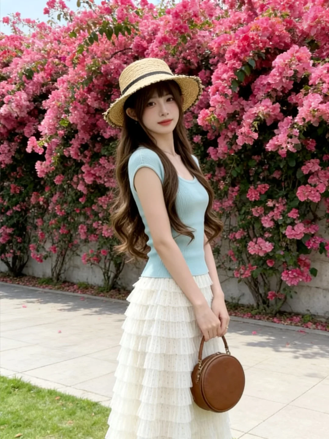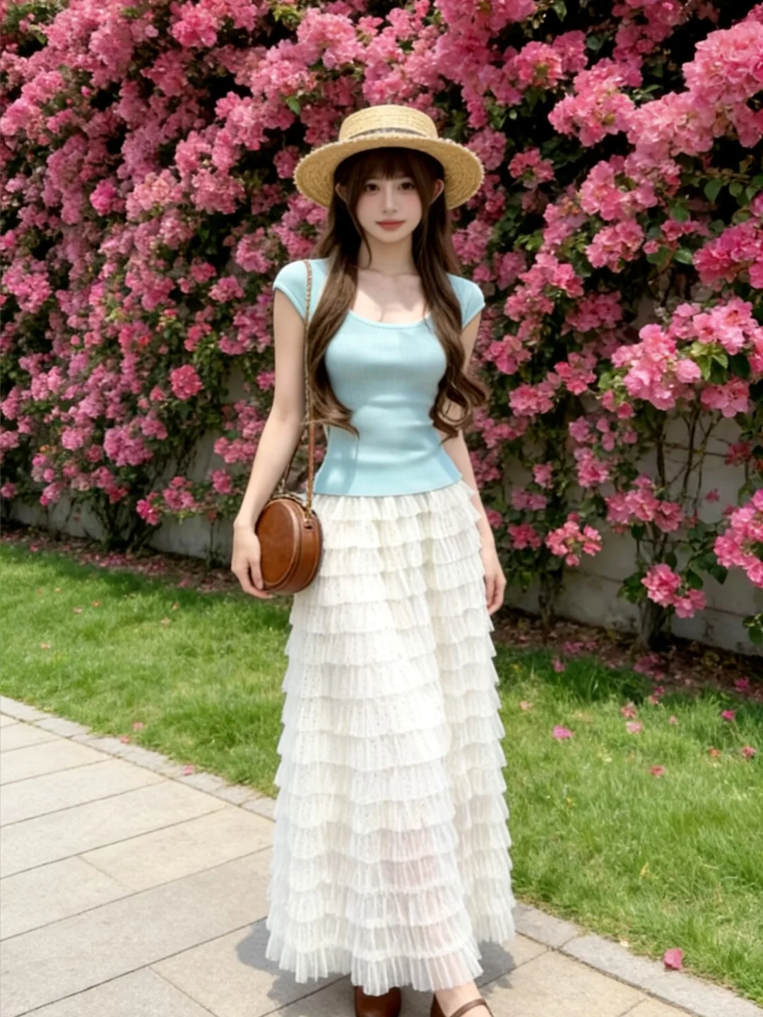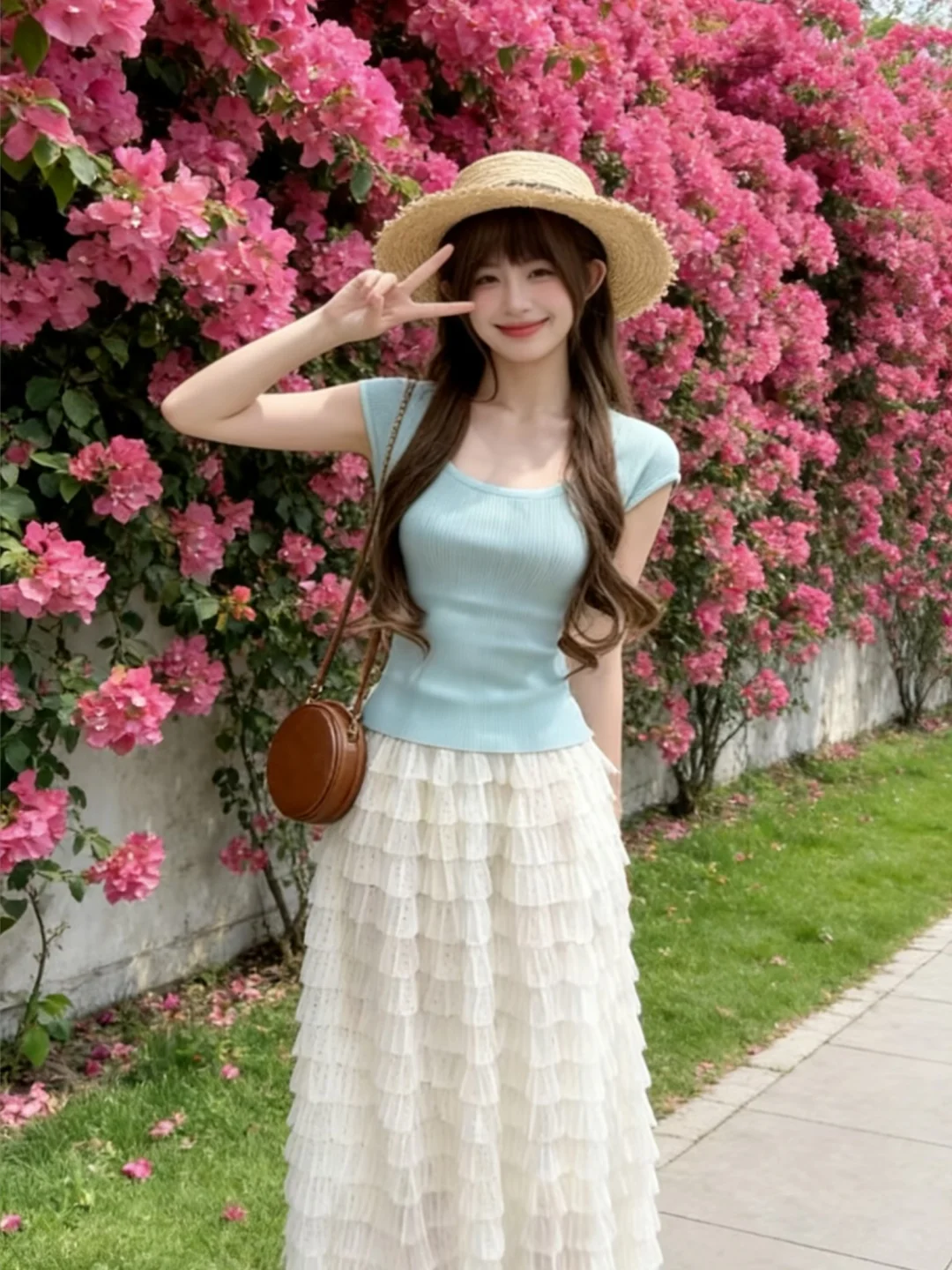 甜美风必备 春暖花开温柔风穿搭 甜美穿搭 温柔气质风穿搭 蛋糕裙 短袖T恤 纯欲风 美女风格 氛围感穿搭夏天 少女穿搭