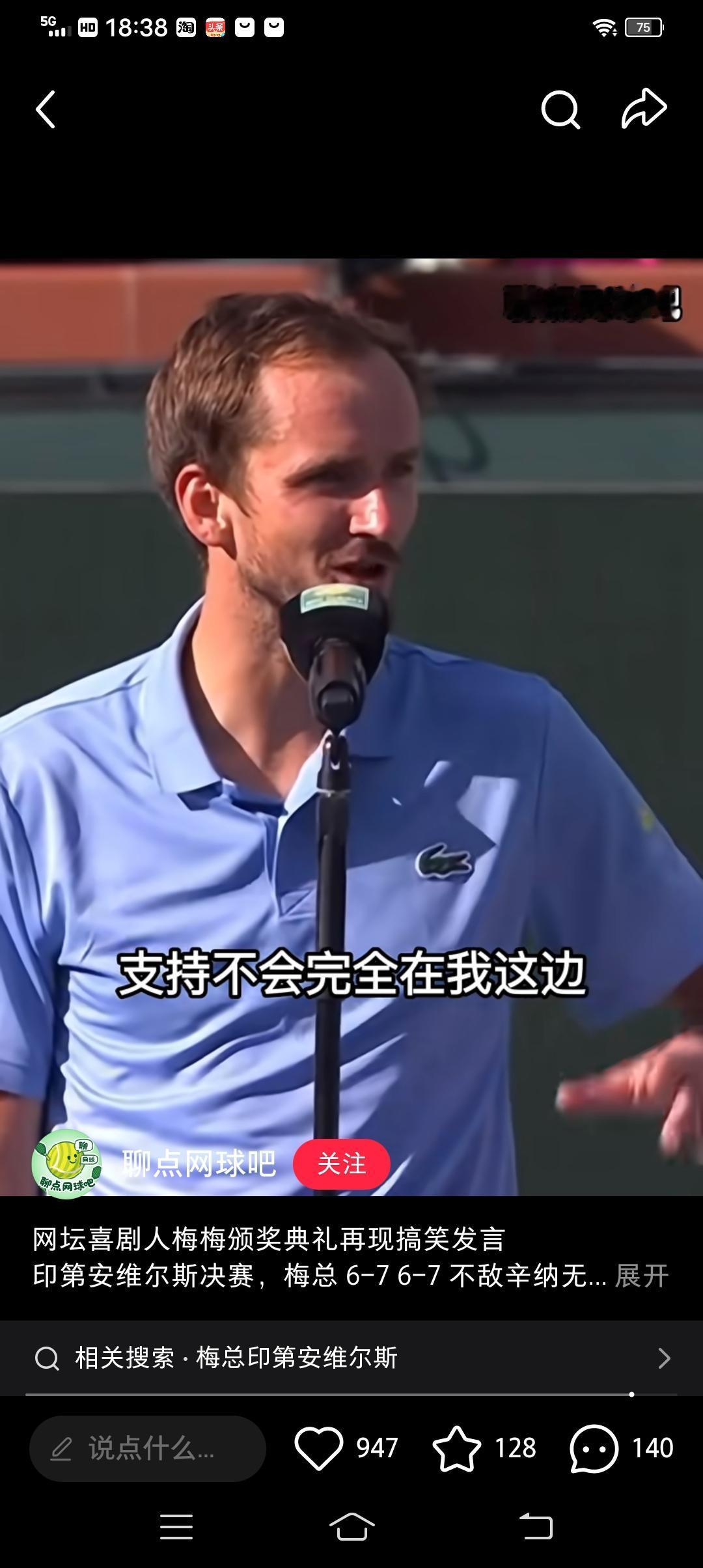 梅总两个6:7不敌辛纳,屈居印第安维尔斯公开赛亚军,可貌似他的心情并没有因为这次的输球而有些许的不快。在赛后的采访中,他非常感谢现场的观众,认为现场观众非常公平,给到了他和辛纳、阿卡甚至德约一样的支持…… 不得不说,梅总现在也是学聪明,明明在前面几场有被嘘到,但他还是表现的非常大度,尽可能多的夸了现场的观众!