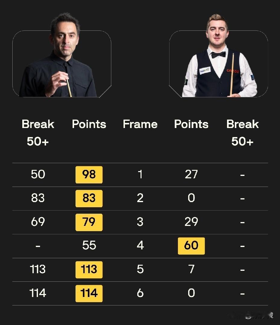 世界公开赛下午时段比赛结束,火箭5-1大胜罗斯·缪尔,墨菲1-4落后上演大逆转,5-4绝杀大卫·利里,张安达5-3胜徐嘉锐,周跃龙5-3胜贺国强,赵瀚洋4-5被罗比·威廉姆斯逆转绝杀。19点30分有8场比赛,其中赵心童对阵外卡选手韩富源,张家玮对阵小司机,特鲁姆普对阵劳埃德,王信伯一日双赛对阵沃顿。 火箭奥沙利文战罗斯·缪尔,结果没有悬念,毕竟实力有太大差距。缪尔赢的一局,主要是做了一杆高质量的斯诺克,火箭多杆没解到被罚分,解到后漏球,最终缪尔逆转拿下。另外,火箭第5局打147没有成功,拿到113分。第6局,火箭打出本场比赛第二杆破百。 赵瀚洋对罗比·威廉姆斯,先发制人,来了一个3-0,但之后被罗比连扳3局,其中第6局,赵瀚洋超分被逆转。之后赵瀚洋4-3领先,又被罗比扳平。比赛进入决胜局。 决胜局,赵瀚洋的几次防守失误,最终被罗比·威廉姆斯逆转绝杀。 墨菲与大卫·利里的比赛值得一说。墨菲在赛季的后半段状态严重下滑,多次一轮游。今天面对利里,一开始状态依然没有好转。墨菲一路上花了50多个小时直奔比赛地玉山,累是肯定的,不过利里也一样,所以还是状态调整的问题。 利里一度1-4拿到赛点,第6局墨菲率先扳回一局。第7局,利里45-10领先,但被墨菲做了一杆高质量斯诺克,利里罚了13分,接着墨菲继续进攻,61-45反超比分。之后墨菲漏长台,利里上手,可惜打粉球出现滑杆。之后攻防转换中,利里也做了一杆高质量斯诺克,但墨菲两杆就解到了。最终墨菲拿下这一局,3-4再挽回一个赛点。 第8局,利里长台上手,可惜只拿到12分K球堆摔袋,墨菲上手一杆超分。利里之后挣扎了几个回合,但无力翻盘。 从1-4落后到4-4,墨菲连追了3局。比赛进入决胜局。决胜局,墨菲68-0完成超分,桌面只剩67分,此后利里防守失误,墨菲上演大逆转,5-4逆转绝杀利里,晋级32强。 另外两场德比,张安达5-3艰难战胜外卡选手徐嘉锐。周跃龙5-3战胜贺国强。此外,外卡选手刘杨3-5负于杰克逊·佩奇。 今天19点30分: 赵心童vs韩富源 特鲁姆普vs劳埃德 王信伯vs里奇·沃顿 宾汉姆vs麦克吉尔 塔猜亚vs格雷斯 斯莱瑟vs威尔斯 瓦菲vs史蒂文斯 小司机vs张家玮 中国球员,加油!