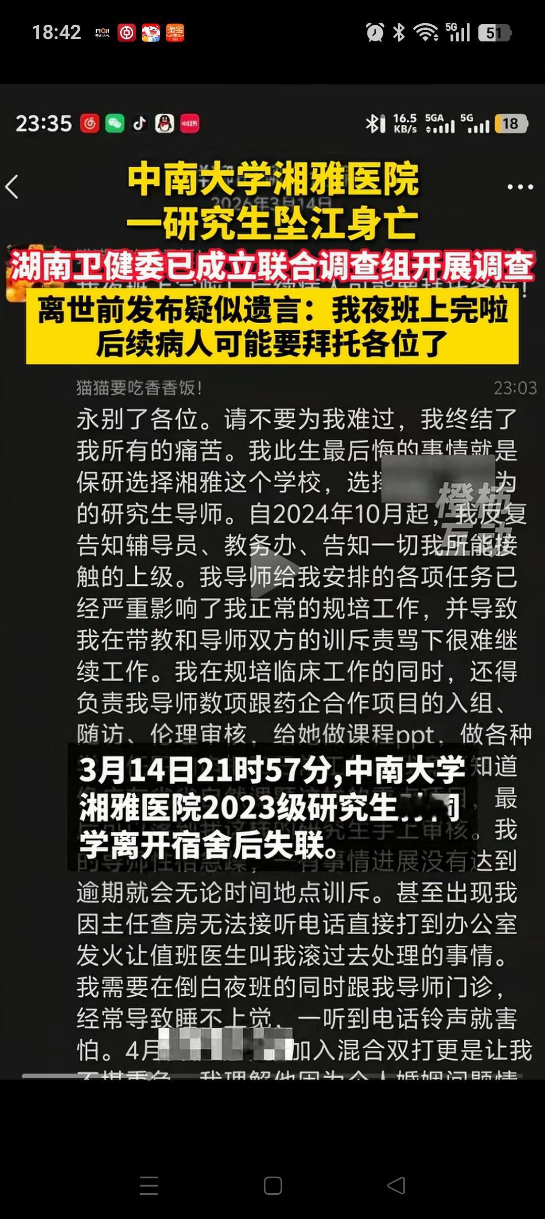 湘雅医院研究生孙同学的导师谷文萍,今年58岁,毕业于湖南医科大学,还曾经赴美斯塔福大学学习。回来后长期在湘雅医院工作,履历可以说很优秀,一路顺风顺水。。 看了孙同学最后留下的一篇文章,可以看出谷医生对她的要求很高。她不仅要完成自己的本职工作,还要帮谷医生做PPT等等。 而且从她的自诉来看,她早就压力比较大了,撑不住了,也跟谷医生和教务办的人说过。但谷医生和教务办的人都觉得她是小题大做,因为和她一起来的人都没事。 其实每个人的承受能力是不一样的,如果谷医生和教务办的人能够早一些意识到,给她降低工作量。是完全可以避免这事的,好可惜[祈祷][祈祷]