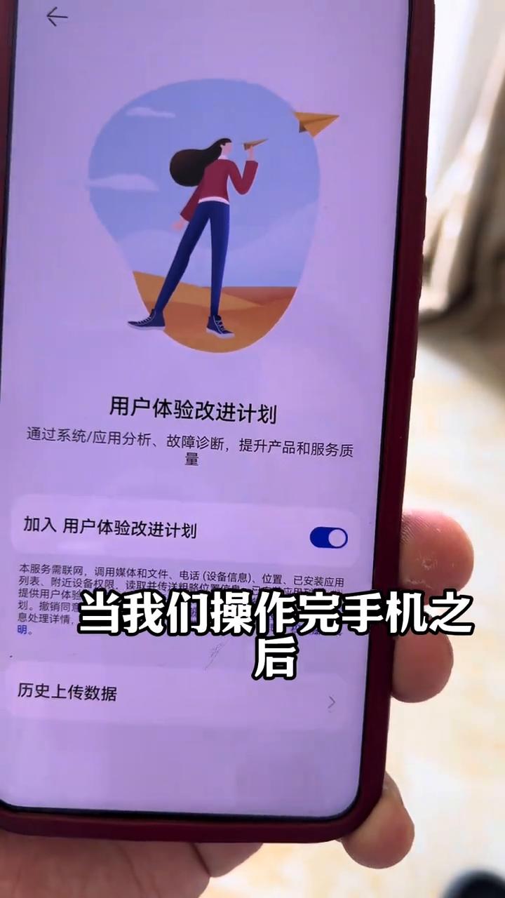 华为手机最危险设置一定要关闭掉。 华为手机最危险的设置一定要把它关掉,千万别拿它不当回事,只要关掉了手机用10年都不卡顿,朋友们跟着我一起操作。 ·首先在手机上找到设置,打开它。打开之后在这里面找到桌面和个性化的选项,点开。点进来之后这里就有一个杂志锁屏了,点进来上方有一个开关叫开启杂志锁屏,它是默认开启的。这个开关很多朋友不知道什么意思,我给大家演示一下就知道。 每次开机的时候看到这个画面了吗?各种各样的图片都有,每次开都不一样。发现这个情况了没?这个就叫做杂志锁屏,它是在使用流量在后台悄悄下载的,而且下载多了之后占用内存,所以这个开关直接关掉就行,不要开启,如果不开启就不会出现这种情况了。 ·返回来之后返回到设置,滑到下方来,这里有一个用户和账户,点进来之后这里面好多,右上角4个点自动同步数据,自动同步分身数据,这两个对号全部都要取消掉,不管是哪个都要取消。 ·接着返回看第三个系统和更新,点进来之后下方有一个用户体验改进计划,这个开关也是默认开启的。很多朋友都不知道它干什么的,我给大家说一说。这个就是当操作完手机之后就会默认的上传到后台帮助它更新优化,帮助它的EMUI更新优化的,所以跟咱们没什么关系也要把它关掉。 ·返回来系统软件更新,点进来右上角就能看到4个点,点开这4个点选择本机设置,这里面有一个WLAN下自动下载、夜间自动安装还有协同更新,全部都给它关掉。 这三个全部关掉,手机刚买回来的时候手机系统都是新的没必要更新,旧手机更新它也跟不上,所以直接关掉它就行,不要去更新了。 关掉以上4个地方再来感受一下,手机安全性大大提升。