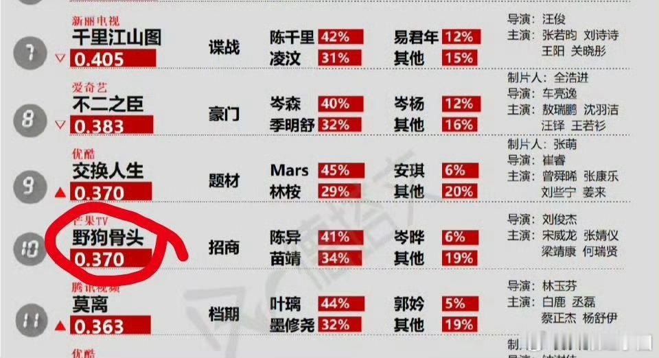 野狗骨头德塔文待播前十!宋威龙 贡献值第一!!!期待这个现偶已三爆的龙神!