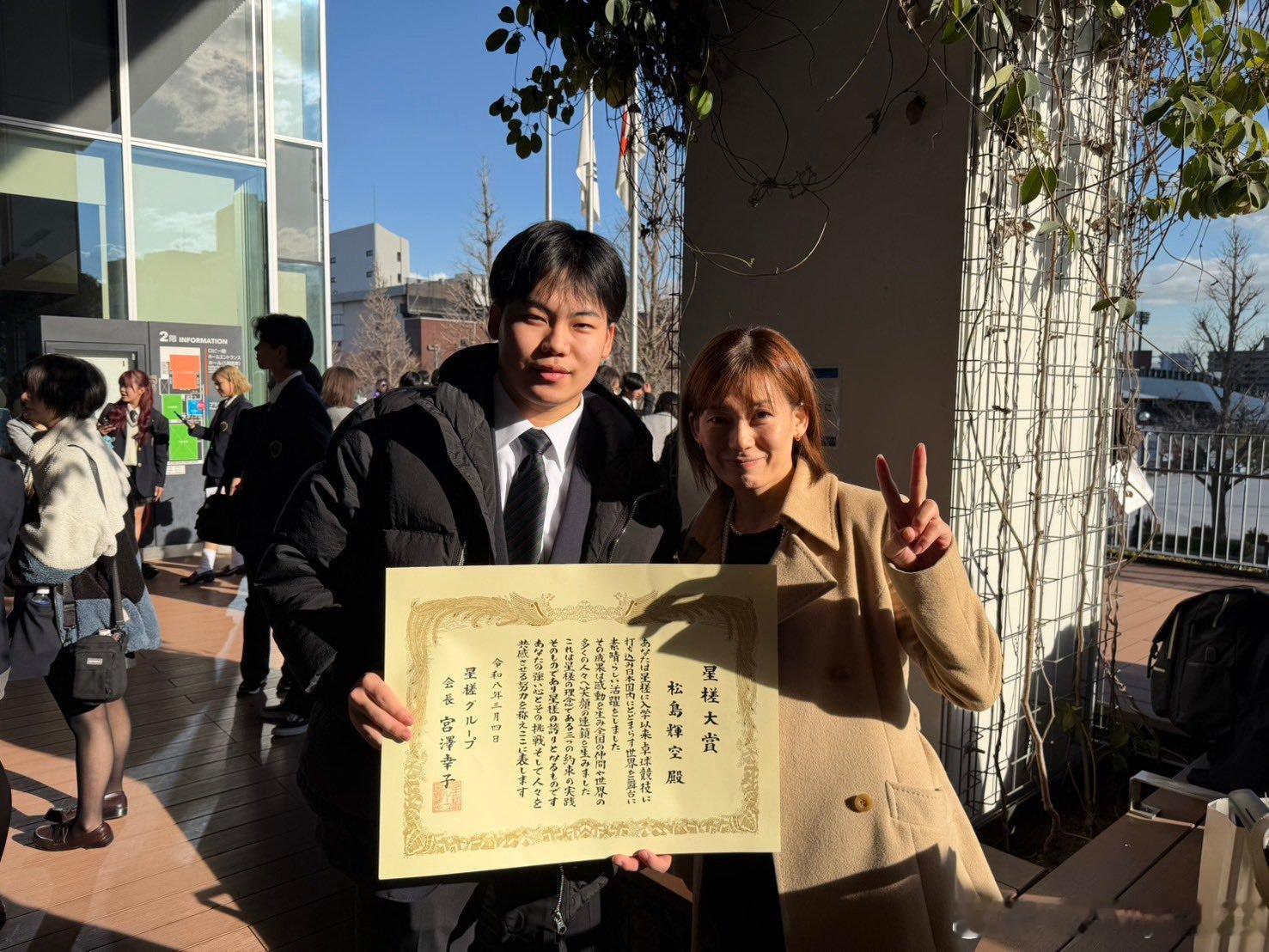 松岛辉空:我要向木下集团的各位表示感谢。从我小学四年级开始,他们就给予了我非常大的支持,让我最近顺利迎来了星槎国际高中的毕业典礼!