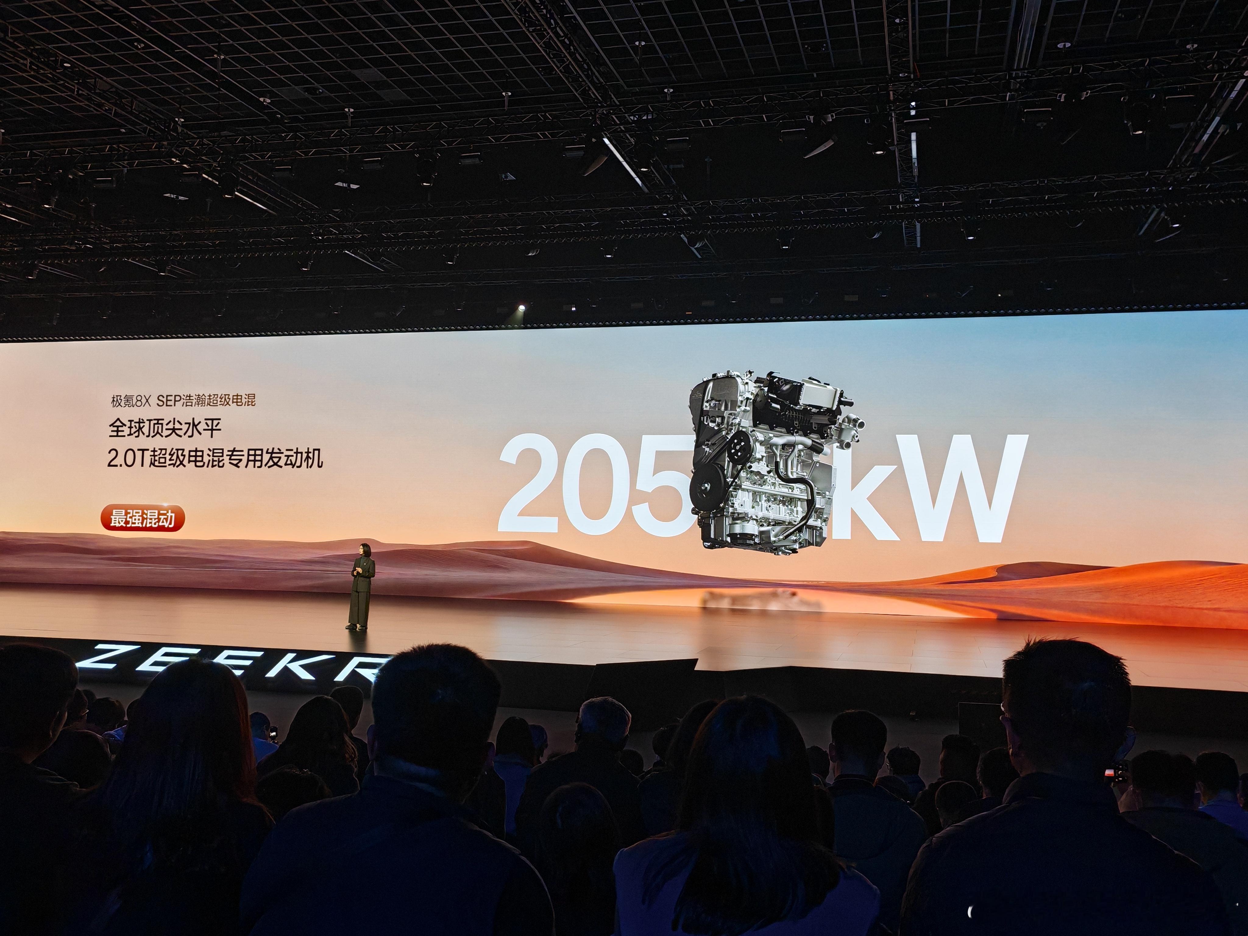 极氪 8X 的混动三电机版本的马力超 1400 匹,其中 2.0T 的超混专用发