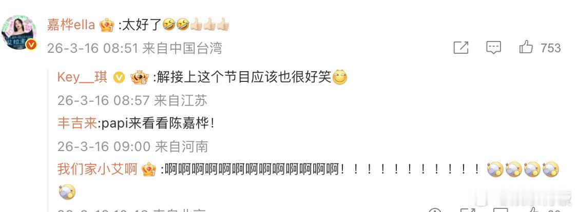 Ella评论瞿颖网友替Ella接上papi热烈欢迎 瞿颖转发papi酱内容后,Ella暖心评论 “太好了”,瞬间拉满期待感。网友们立刻在线接力,喊话欢迎Ella做客。哈哈哈,坐等两位姐姐合作,预定新名场面!
